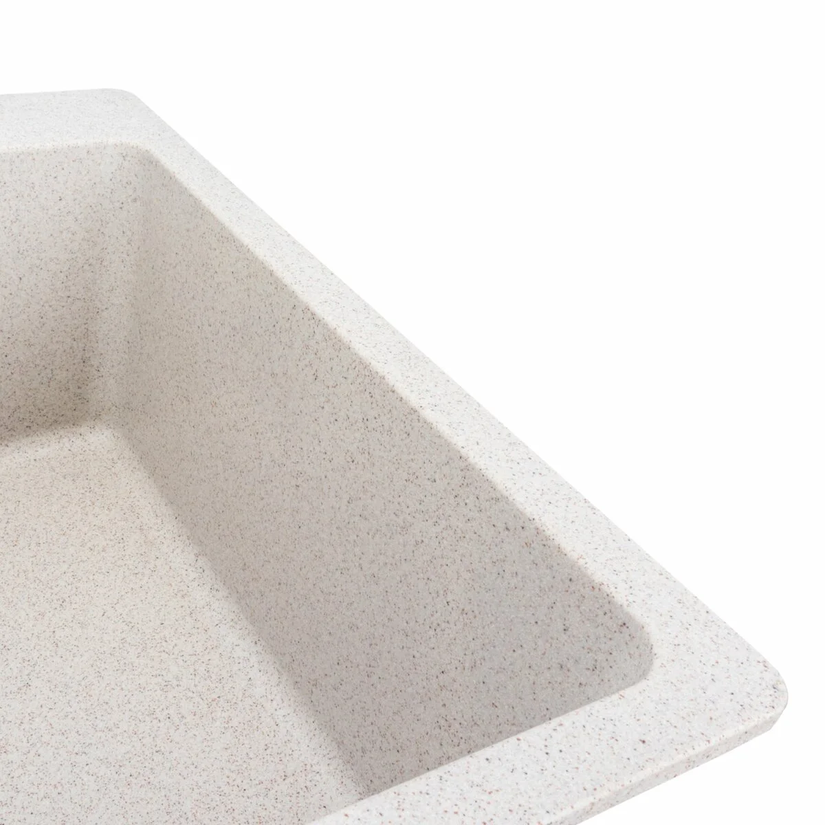 Мийка на 80% складається з кварцу та на 20% з надзвичайно твердої акрилової смоли, завдяки чому невибаглива у догляді, а також має великий запас міцності.