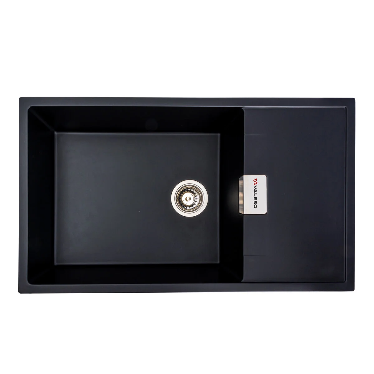 Гранітна мийка для кухні VALESO 8650 DIAMOND матова (чорний металік)
