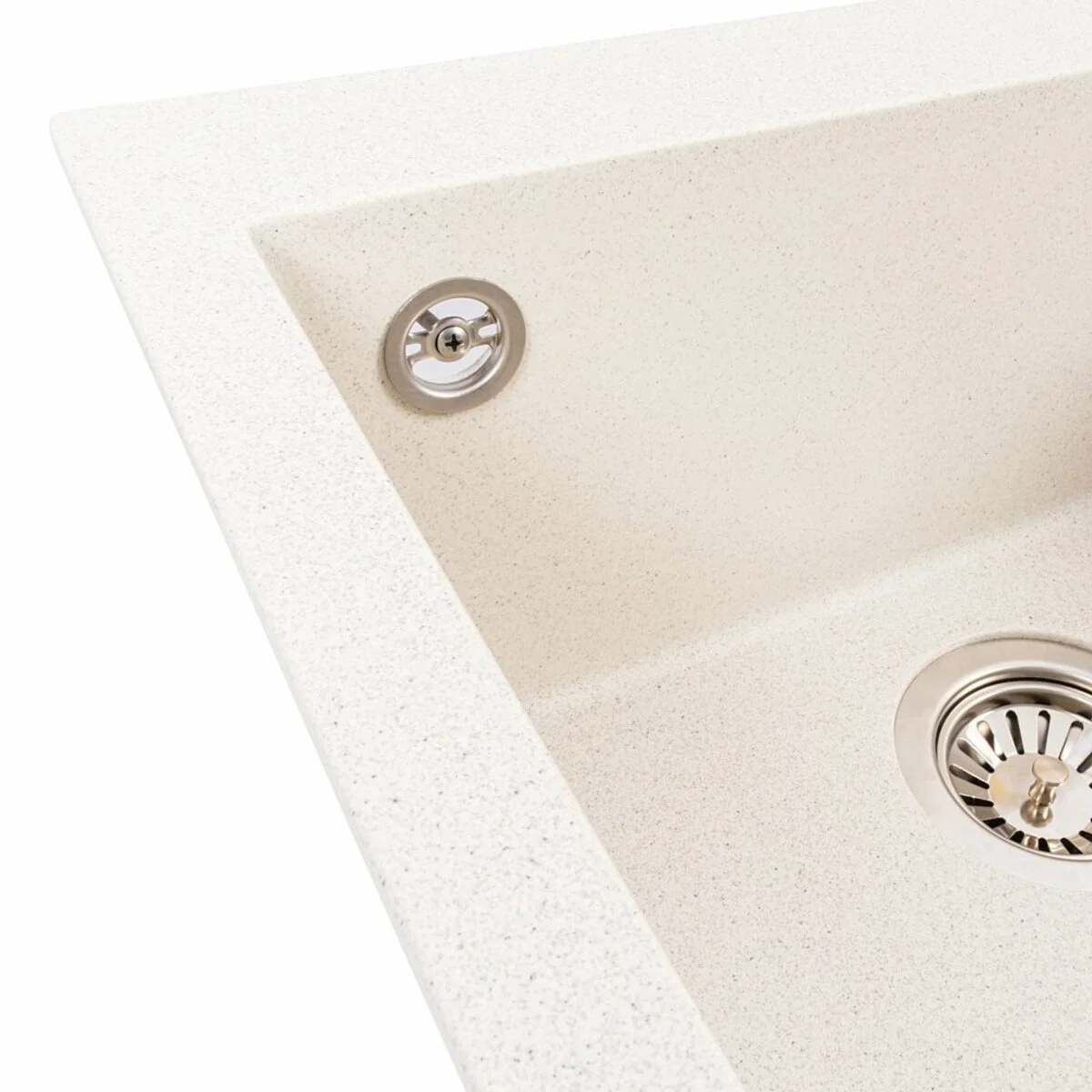 Гранітна мийка VALESO 5050 GALAX у кольорі біла в крапку — це ідеальне поєднання елегантного дизайну та високої практичності, що стане центральним елементом вашої сучасної кухні. Матова поверхня надає мийці вишуканого вигляду, а якісний граніт забезпечує надзвичайну довговічність та стійкість до повсякденного використання. Світлий відтінок з дрібними вкрапленнями додає фактури та приховує можливі дрібні забруднення.