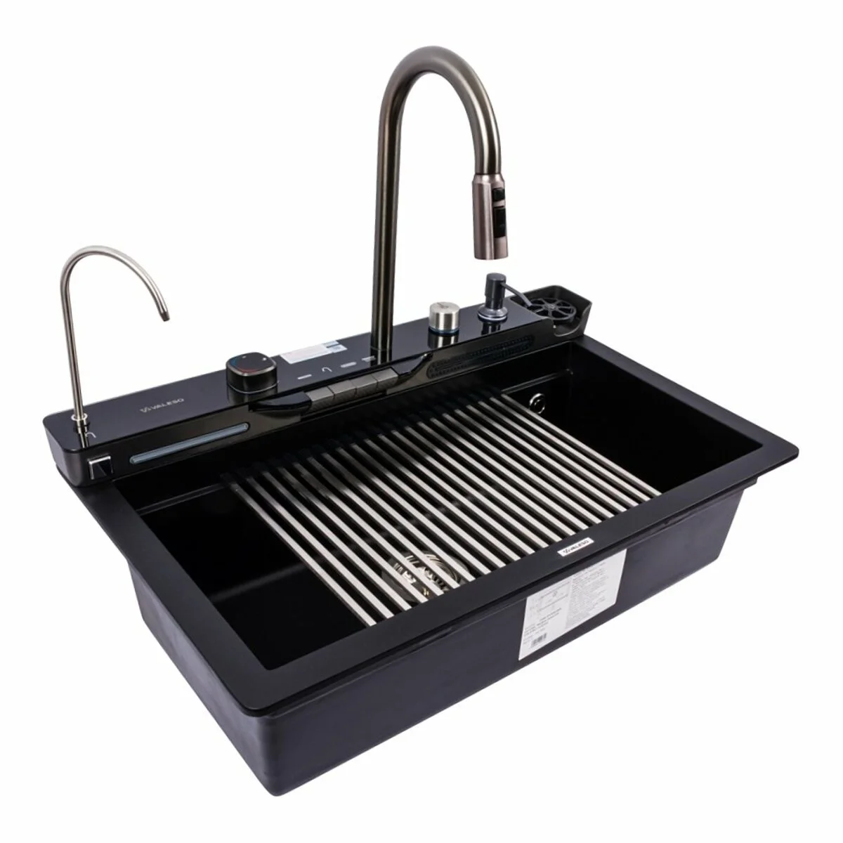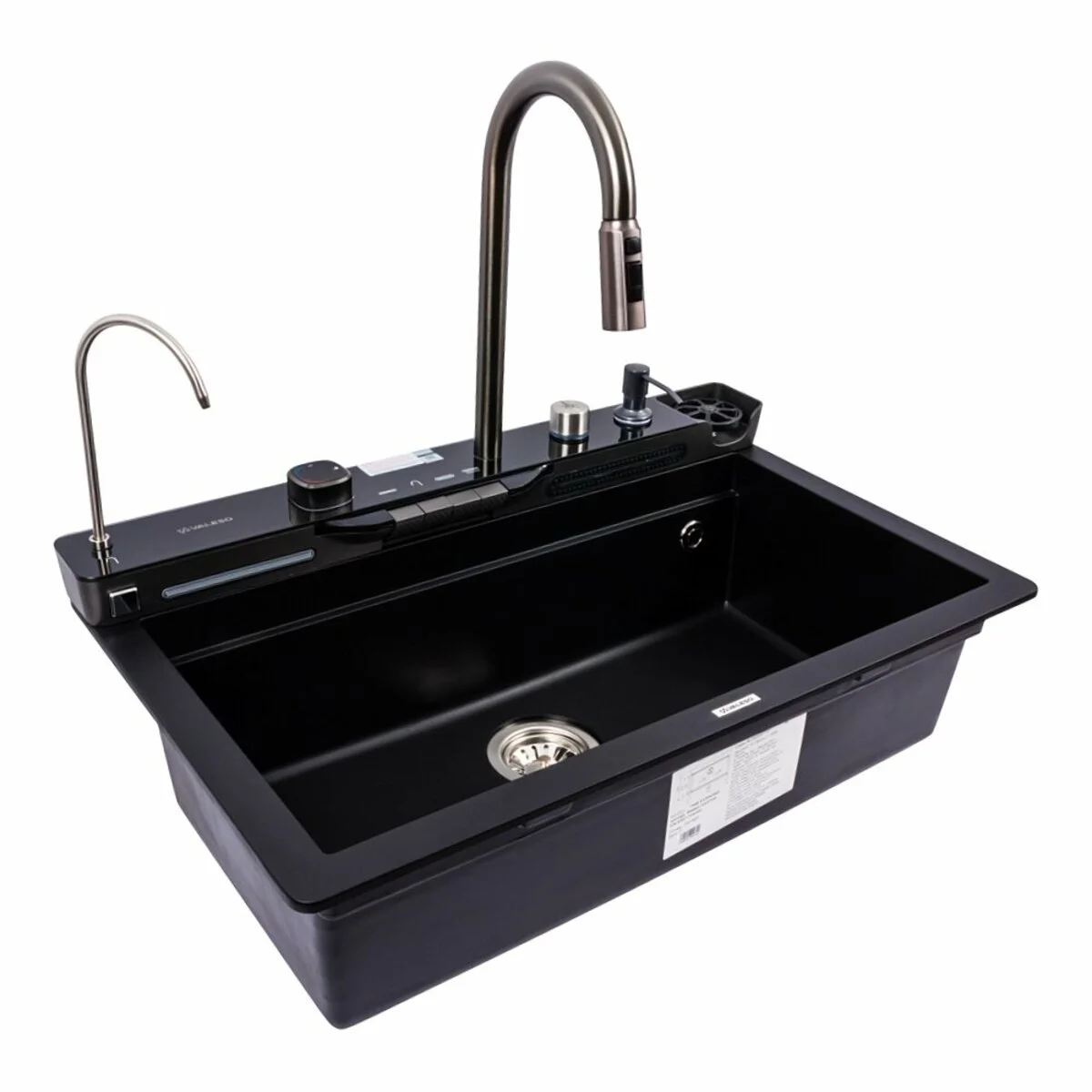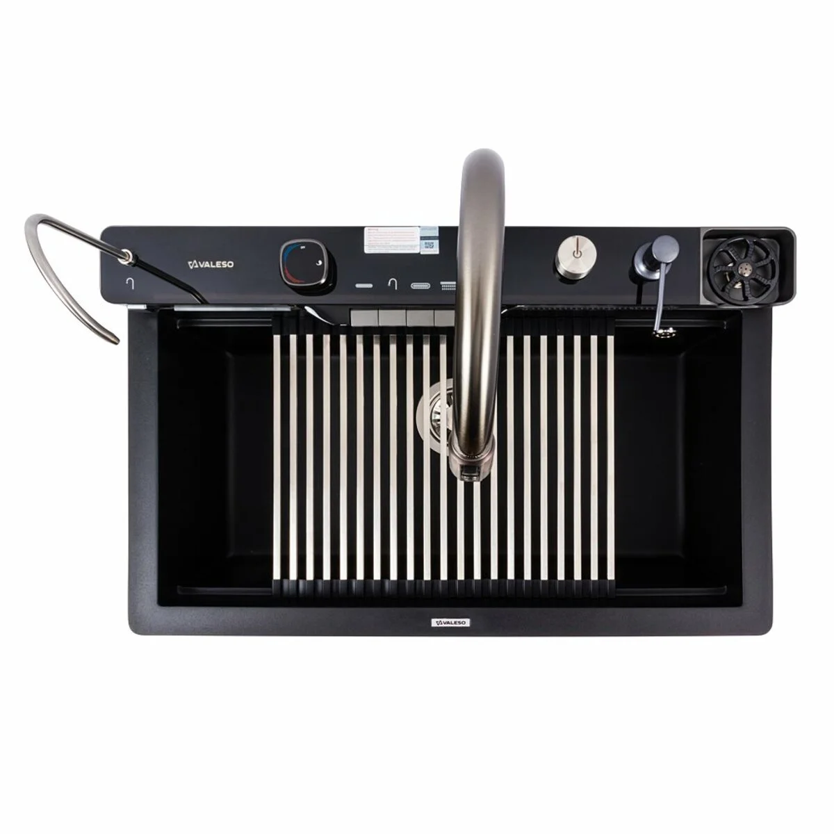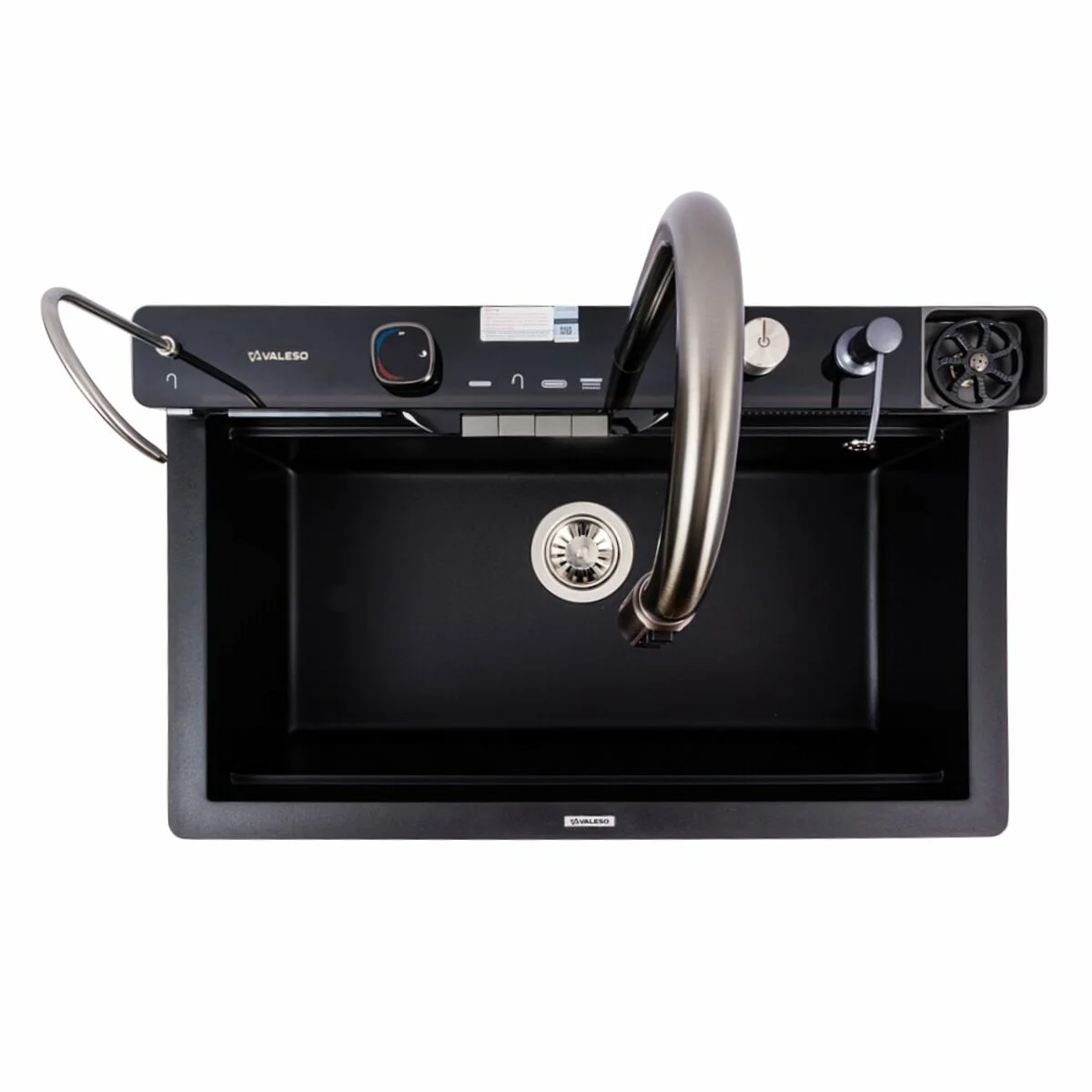 Гранітна мийка VALESO 7546 EVANORA у чорному кольорі — це не просто мийка, а повноцінна інтегрована кухонна робоча станція, що втілює розкіш, інновації та функціональність. Її матова поверхня та глибокий чорний відтінок створюють вишуканий, сучасний та преміальний дизайн.