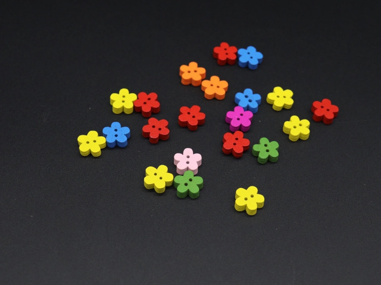 Пуговицы деревянные декоративные, Цветок, 11мм, Цвет «разноцветный»