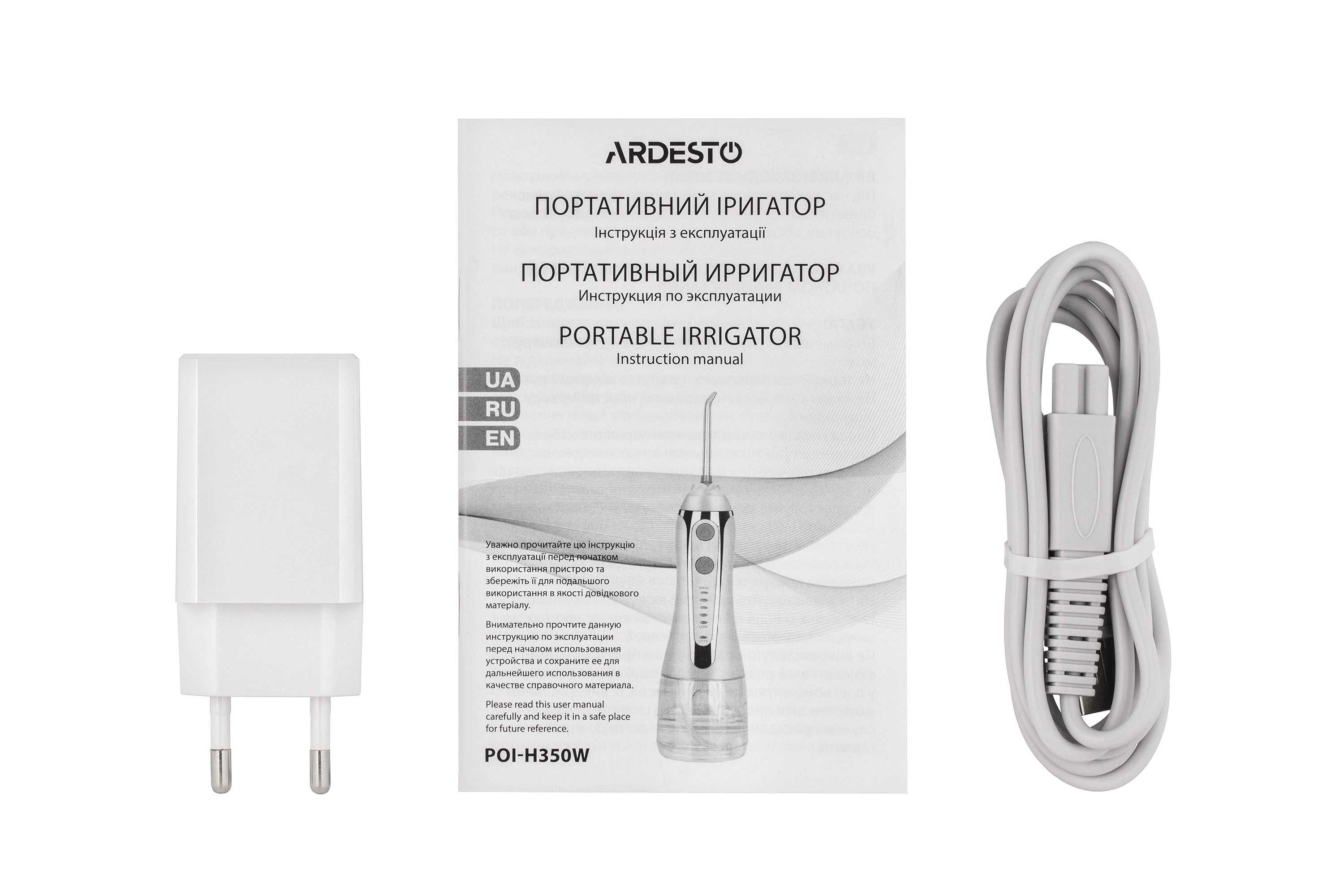 Іригатор Ardesto портативний, чаша 300 мл, акумулятор в комплекті, чохол, 7 насадок, білий