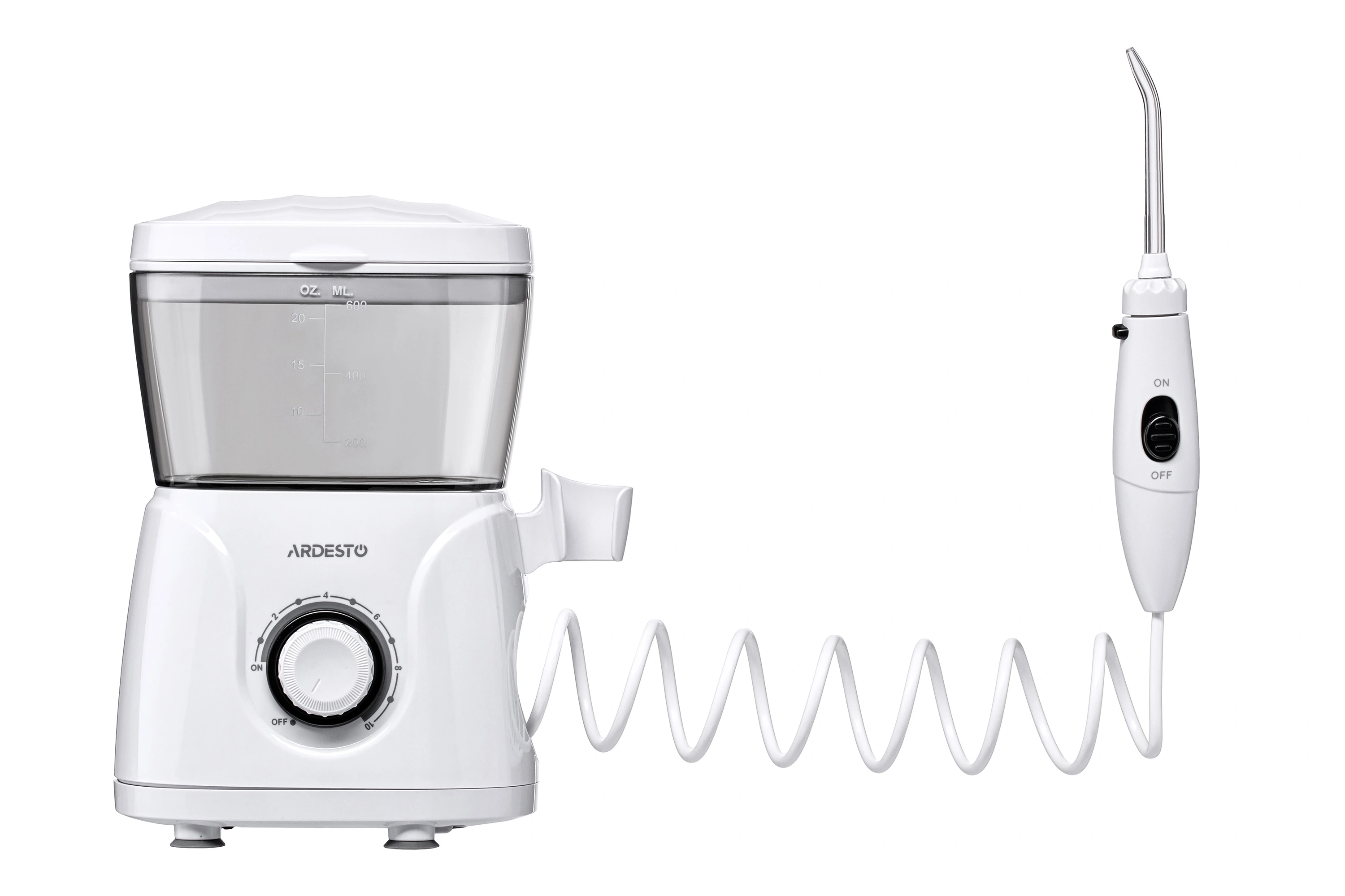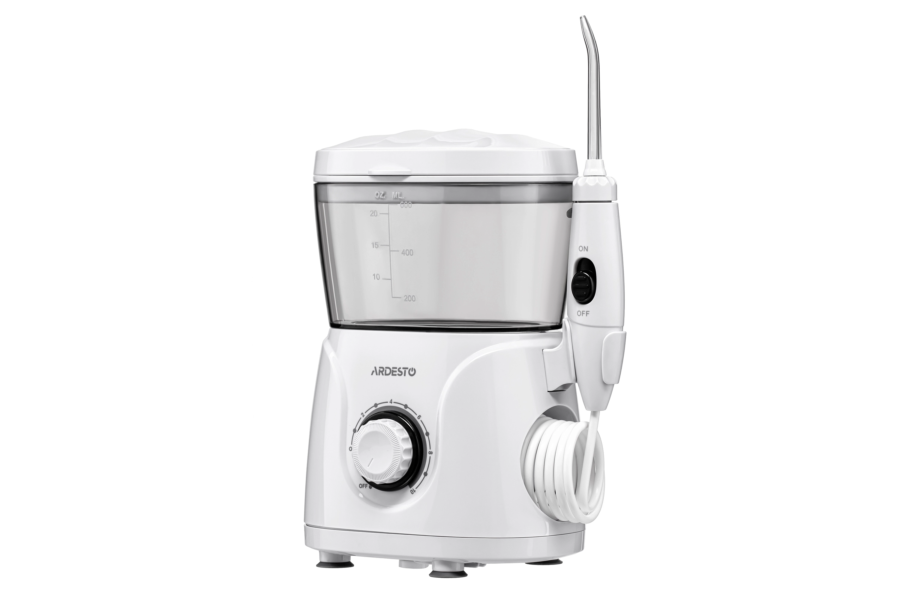 Іригатор Ardesto стаціонарний, чаша 600 мл, від мережі , 8 насадок, білий