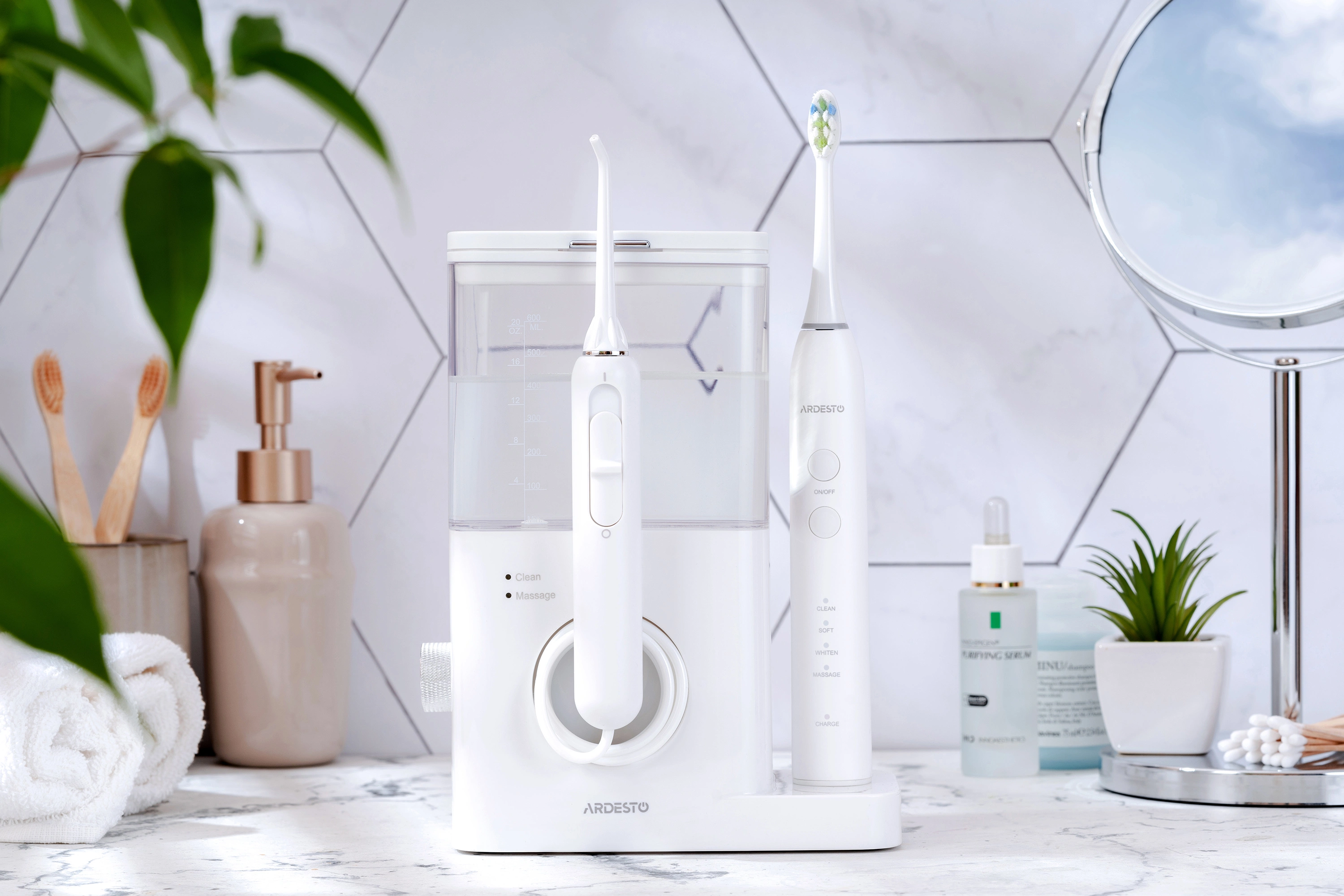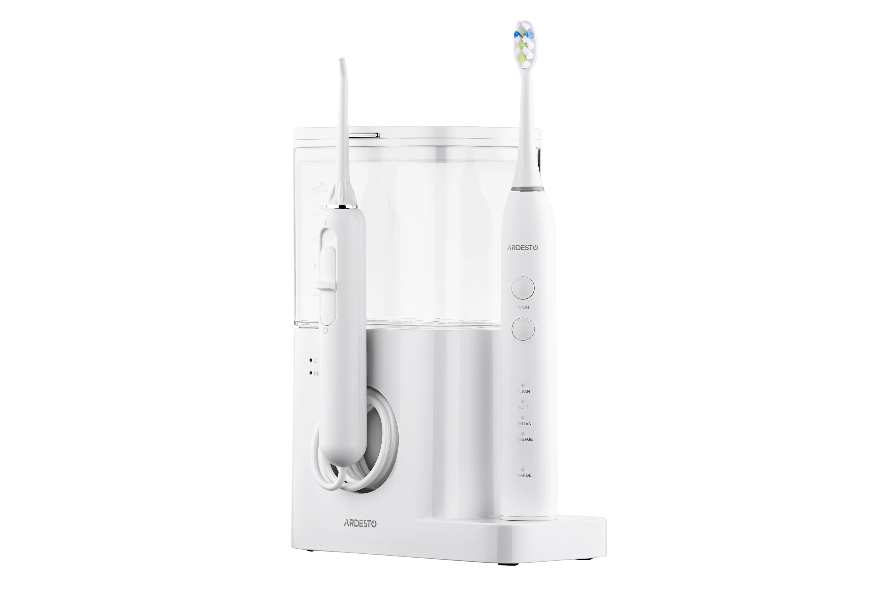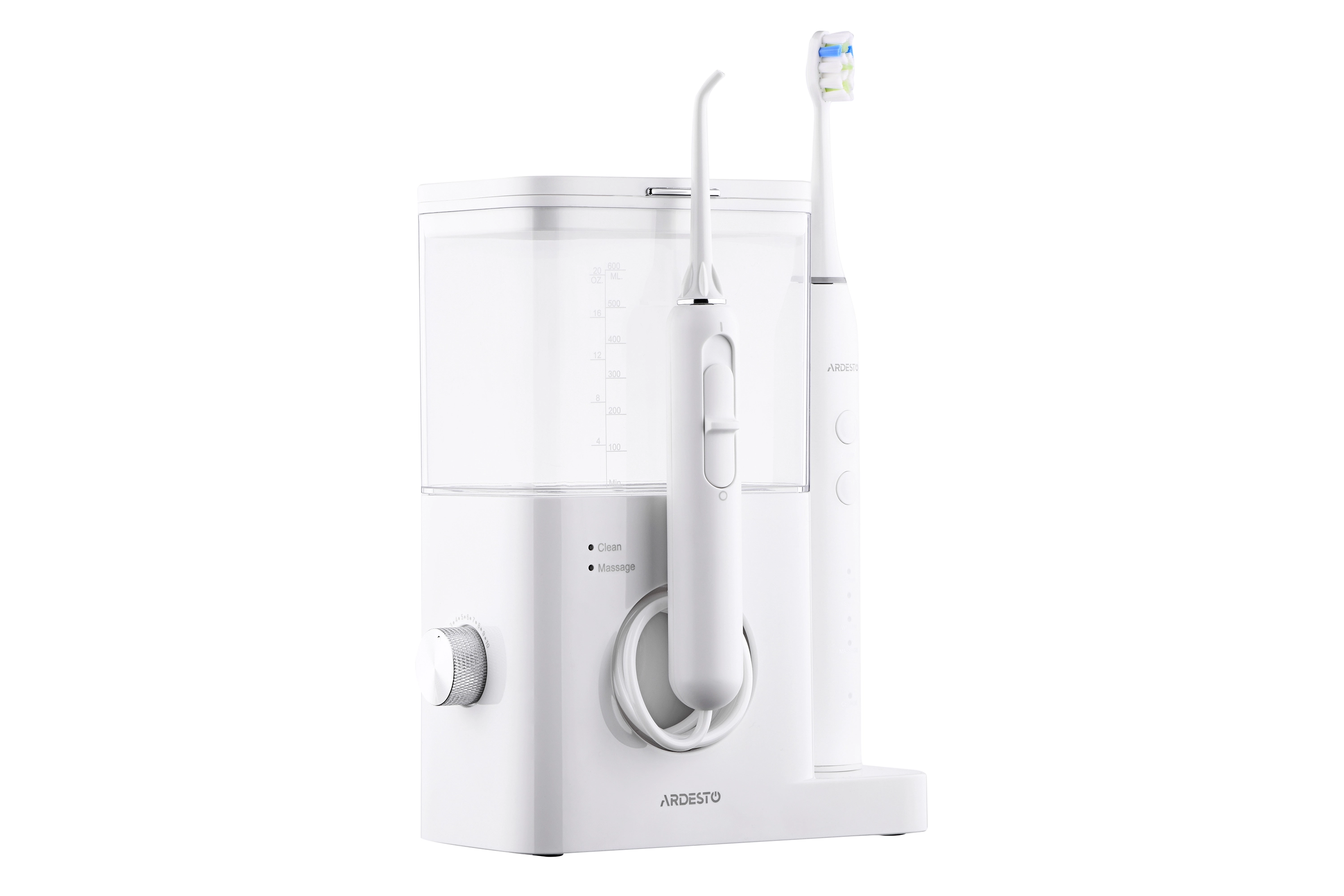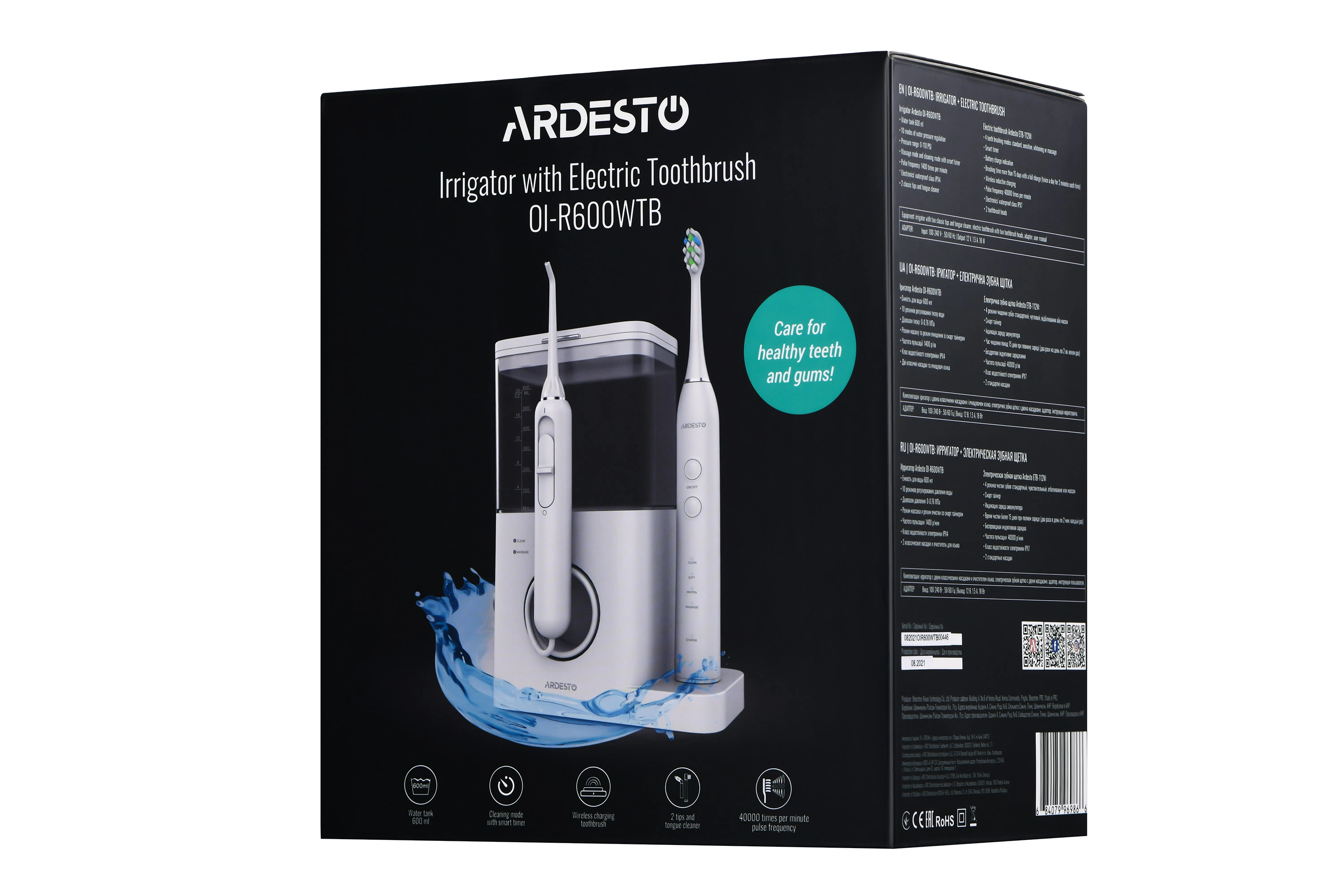 Іригатор Ardesto стаціонарний+електрична зубна щітка, чаша 600 мл, від мережі , 3 насадки, білий