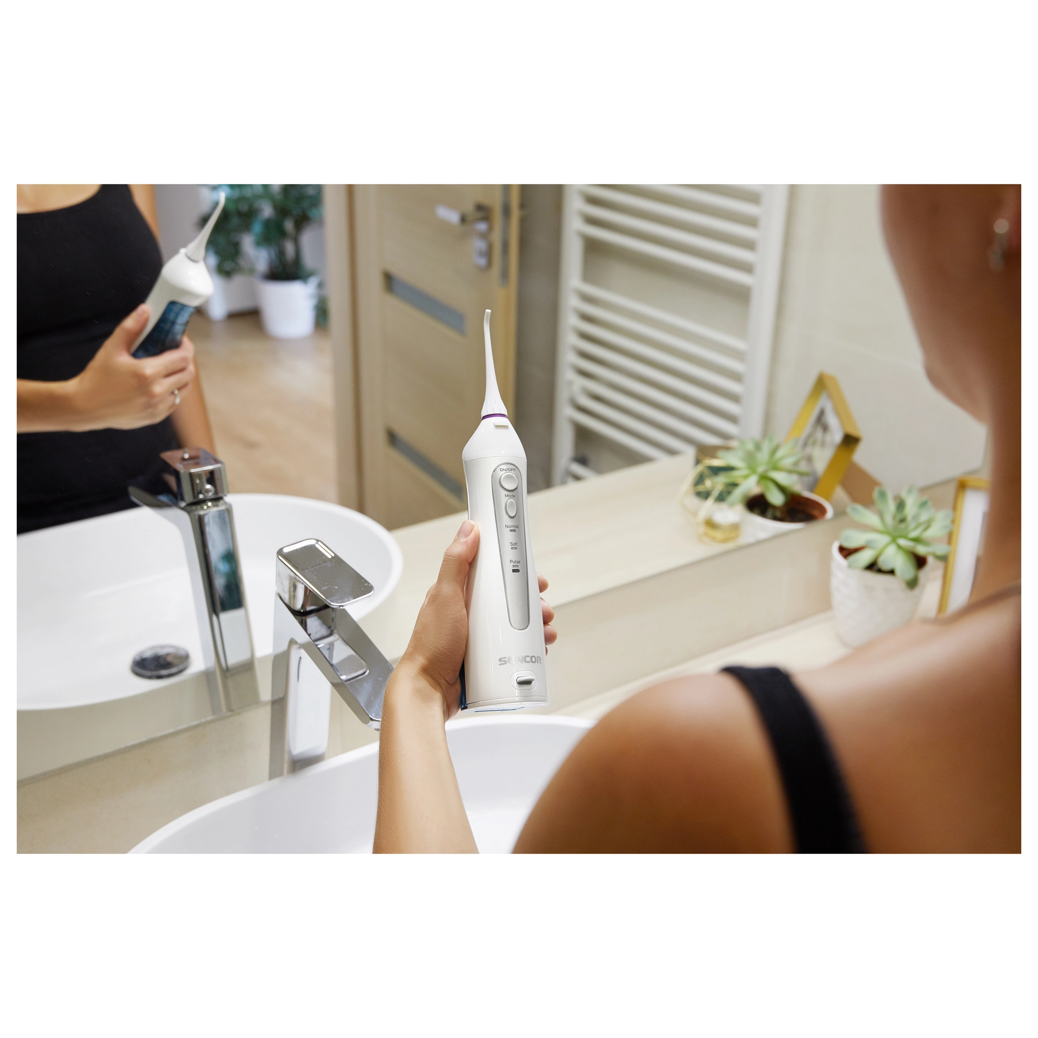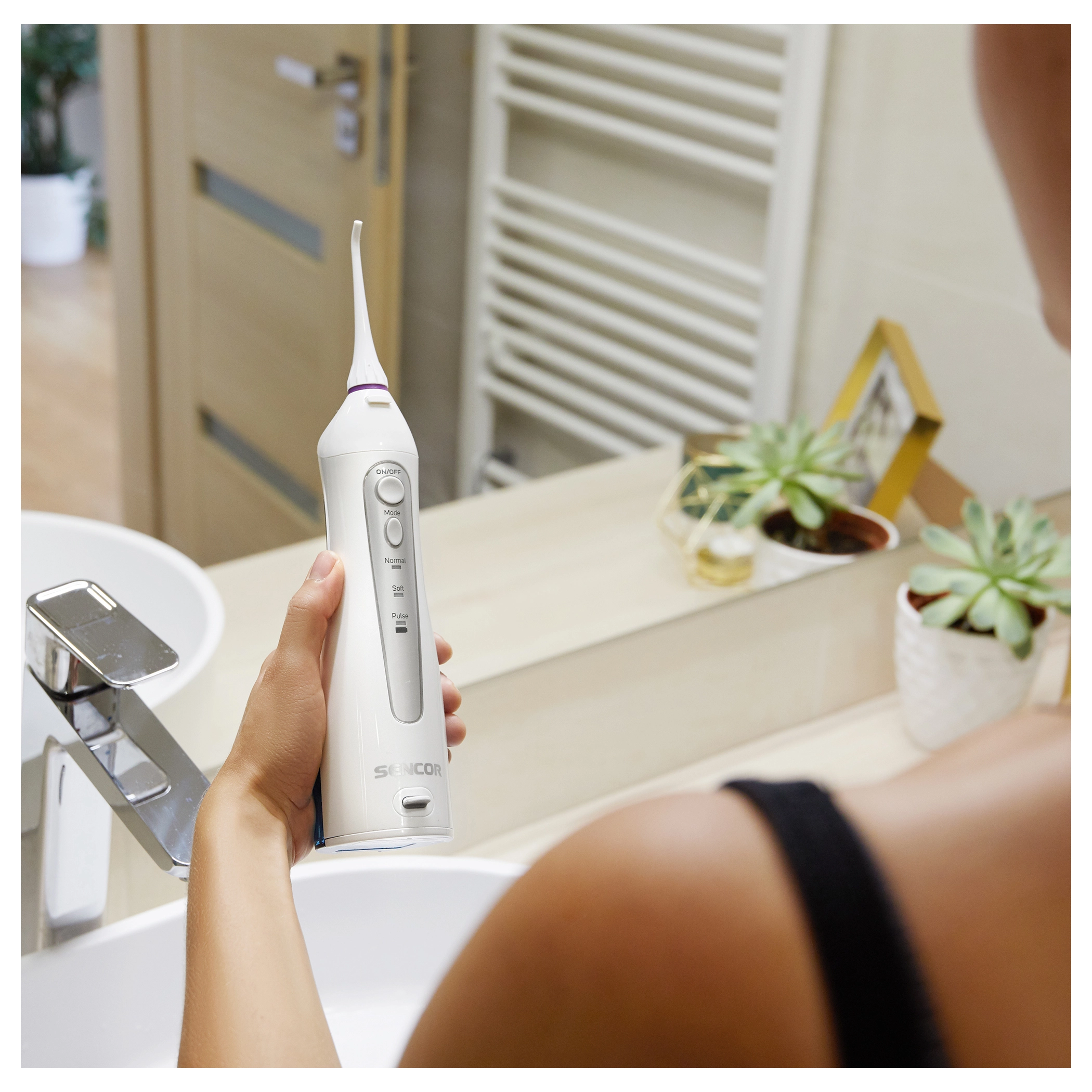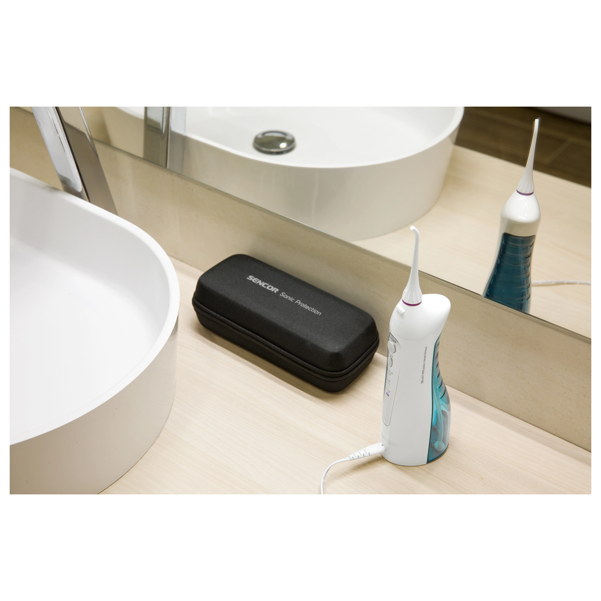 Іригатор Sencor портативний, чаша 150 мл, акумулятор в комплекті, чохол, 10 насадок, білий