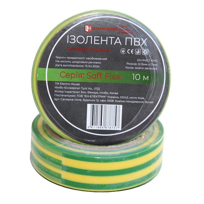 Изоляционная лента ПВХ Soft Flex 10 м, желто-зеленый EH-PVCT-10YG от ElectroSpace предназначена для выполнения широкого спектра задач, обеспечивая надежность и эффективность в любых условиях. Изготовлен из высококачественных материалов, она демонстрирует отличные изоляционные свойства и длительную эксплуатацию. Клеевой слой на основе натурального каучука обеспечивает моментальную адгезию, а материал ПВХ отличается устойчивостью к износу, влаге и воздействию химических веществ. Она не токсична, не имеет резкого запаха, не подвергается гниению и сохраняет свои свойства в температурном диапазоне от минус 50 до +70 °C. Благодаря этим характеристикам ее можно использовать как в помещениях с повышенной влажностью, так и на улице. ;соединений. Лента сертифицирована в Украине, соответствует международным стандартам качества и подходит как для профессиональных электриков, так и для бытового использования.