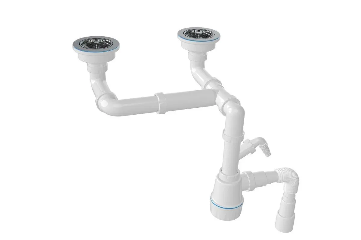 Цей сифон виготовлений з високоякісних матеріалів, яка забезпечує довговічність та надійність протягом багатьох років. Його подвійна конструкція забезпечує надійний захист від неприємних запахів та забруднень, що можуть забивати труби та викликати проблеми з каналізацією.