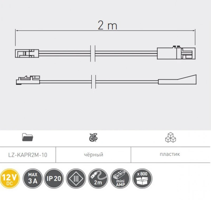 Кабель GTV с соединителями miniAMP для освещения 2м Черный