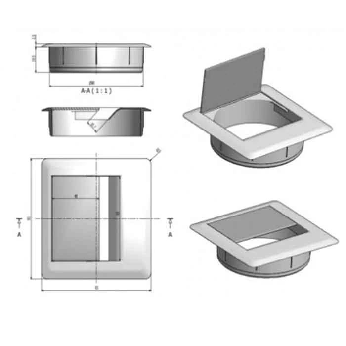 Кабельный пропуск алюминиевый квадратный GTV PM-PLKW80-18 80X80 пластик Темно-серый