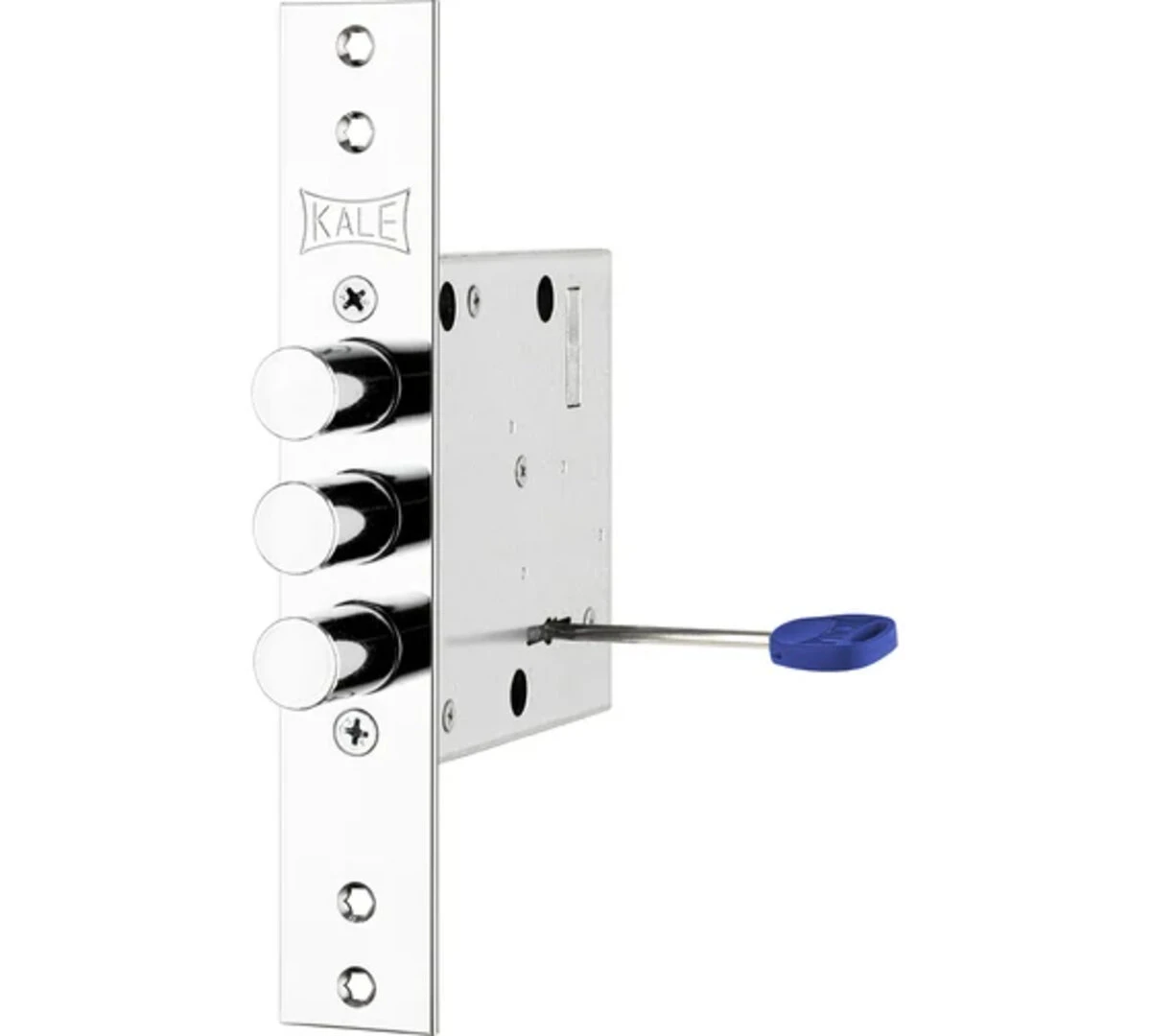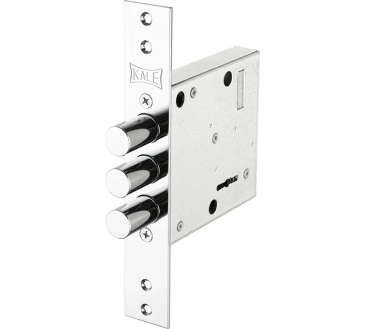 Замок KALE 447 L — надёжный дополнительный врезной механизм турецкого производства, предназначенный для повышения безопасности входных дверей. Конструкция оснащена четырьмя ригелями, которые обеспечивают плотное запирание полотна. Корпус изготовлен из стали с хромированным покрытием, устойчивым к коррозии. Замок с плоской головкой совместим с цилиндровыми механизмами стандарта Гардиан 30.01 и поставляется без ответной планки.