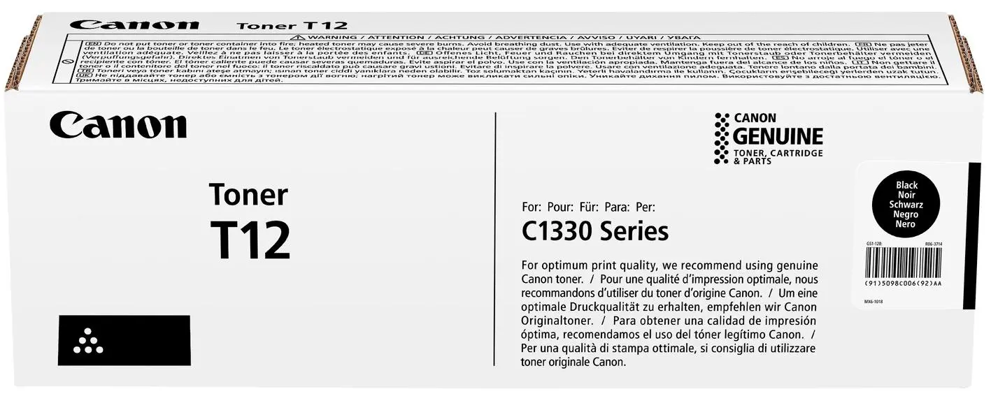 Canon T12 Black Toner Cartridge (5098C006) — це не просто картридж, це ключ до яскравого і чіткого друку. Кожен лист, надрукований з цим тонером, вражає своєю насиченістю кольорів і високою чіткістю. Цей оригінальний картридж Canon забезпечує 7400 сторінок бездоганного друку, що робить його ідеальним для великих проєктів і тривалої роботи.
