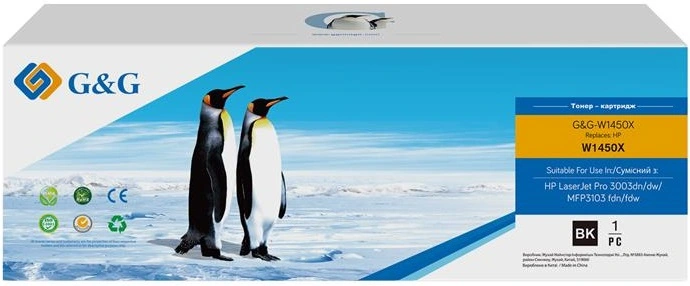 Картридж G&G G&G-W1450X — це картридж, сумісний з принтерами та багатофункціональними пристроями Hewlett-Packard (HP). Він забезпечує високу якість друку завдяки чітким та яскравим відбиткам з високою якістю. Цей картридж має ресурс 3800 сторінок