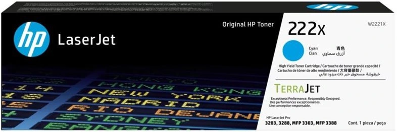 Оригінальний картридж HP 222X W2221X Cyan забезпечує яскравий блакитний колір для лазерних принтерів HP Color LaserJet Pro 3203/3303. Завдяки збільшеному ресурсу 2500 сторінок, він ідеально підходить для офісного та професійного друку, забезпечуючи стабільну якість і чітку передачу кольорів.