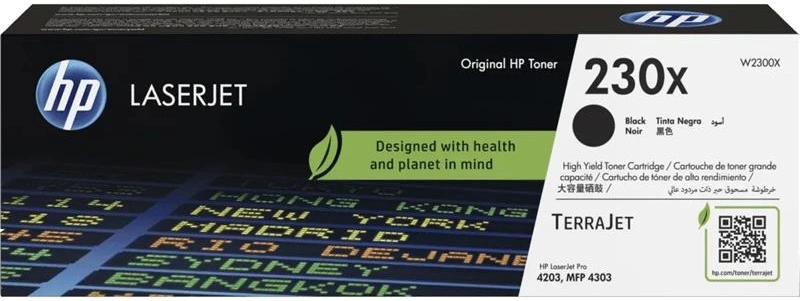 Оригінальний картридж HP 230X чорного кольору для моделей CLJ Pro 4203/4303, з ресурсом 7500 сторінок (5% заповнення тексту).