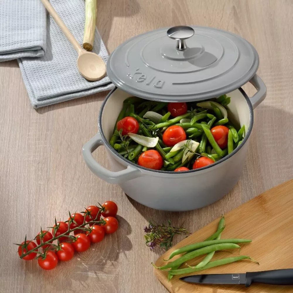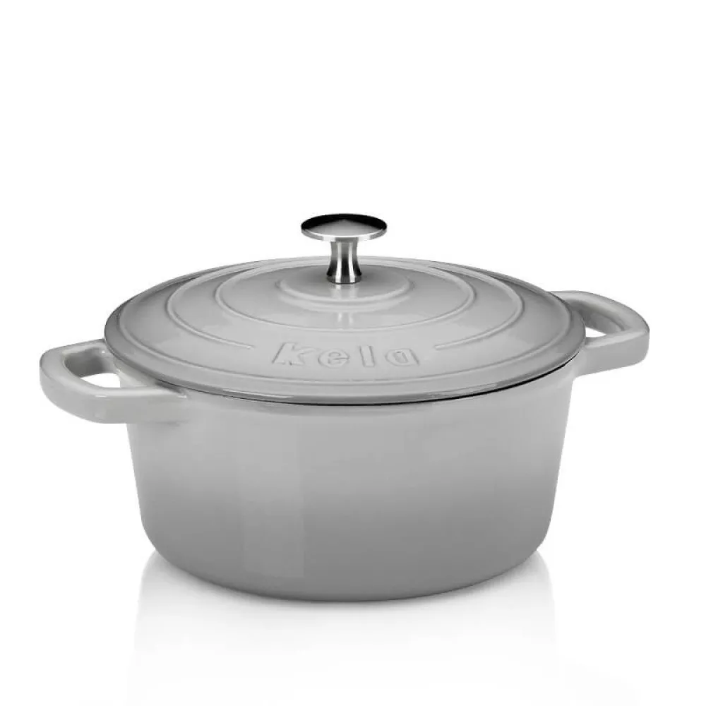 Німецький виробник посуду та начиння для кухні KELA, представляє дуже модну і довговічну каструлю з кришкою KELA Calido. Каструля виготовлена з чавуну і покрита емаллю бежевого кольору всередині, має глянсове покриття. Вона ідеально підходить як для обсмажування (до 300 ° C), так і для тривалого тушкування м'яса у власному соку. Емаль повністю нейтралізує головний недолік чавуну - зовнішню пористість, при цьому зберігаються всі переваги: висока теплоємність та хороша теплопровідність. У ній ви зможете готувати рагу і густі супи, тушкувати голубці і тефтелі, експериментувати з соусами. Також емальований посуд не боїться неприємних запахів і сторонніх смаків, не потребує попередньої підготовки перед першим застосуванням. Її досить вимити з миючими засобом. Чавунна кришка має зручну ручку. Підходить для всіх джерел тепла, включаючи індукційні. Ця каструля є частиною великої серії посуду!
