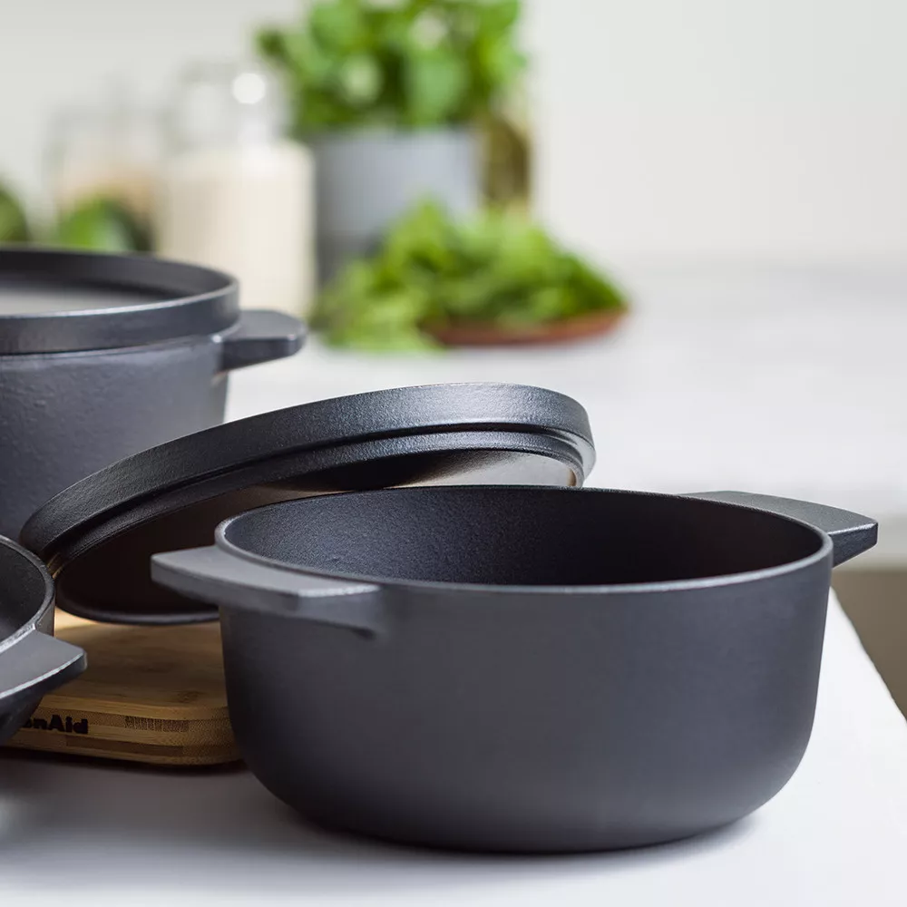 Каструля чавунна з кришкою KitchenAid Matte Oven-to-table, 22 см, 3,3 л, чорний (CC004899-001)