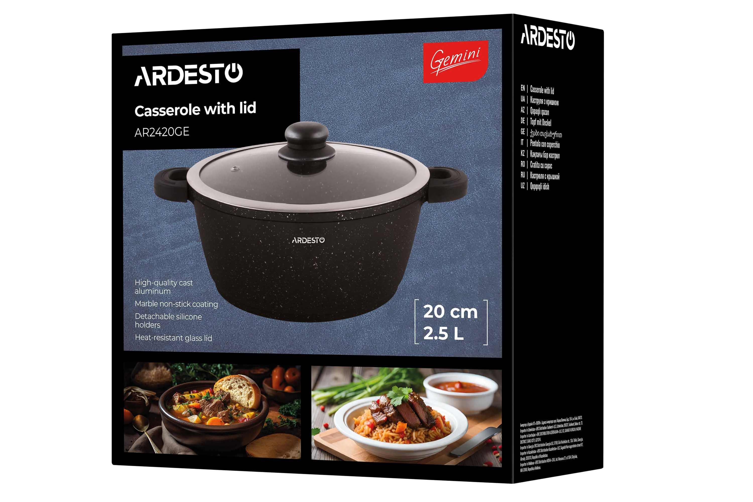 Каструля ARDESTO Gemini Anzio вироблена з литого алюмінію. Її об’єм становить 2,5 л, а діаметр – 20 см. Стінки завтовшки 1,7 мм, тоді як товщина дна складає 4,3 мм – запорука рівномірного нагрівання. Завдяки протипригарному мармуровому покриттю процес приготування буде суттєво простішим.