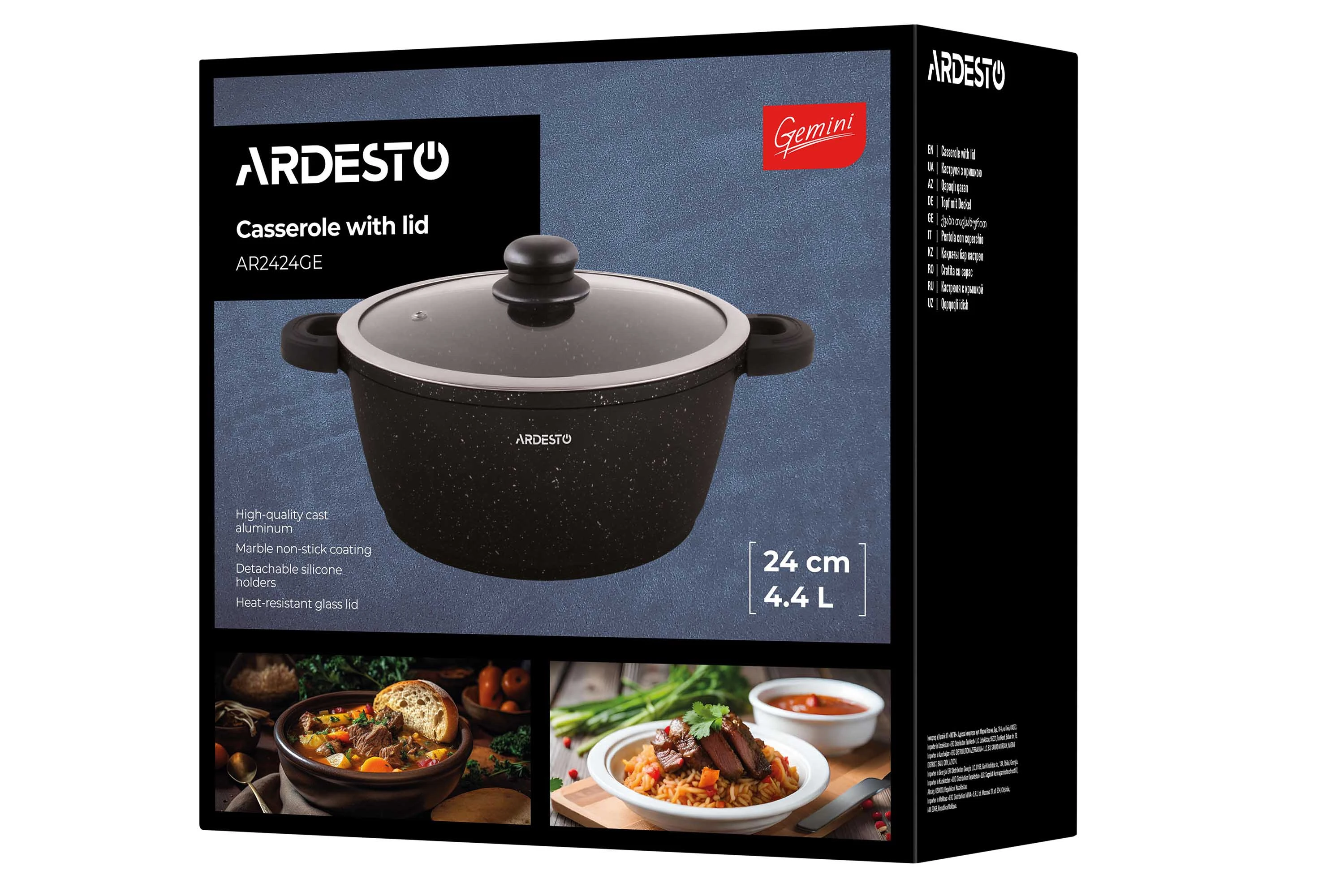 Каструля зі скляною кришкою Ardesto Gemini Anzio, 4.4л, алюміній, чорний