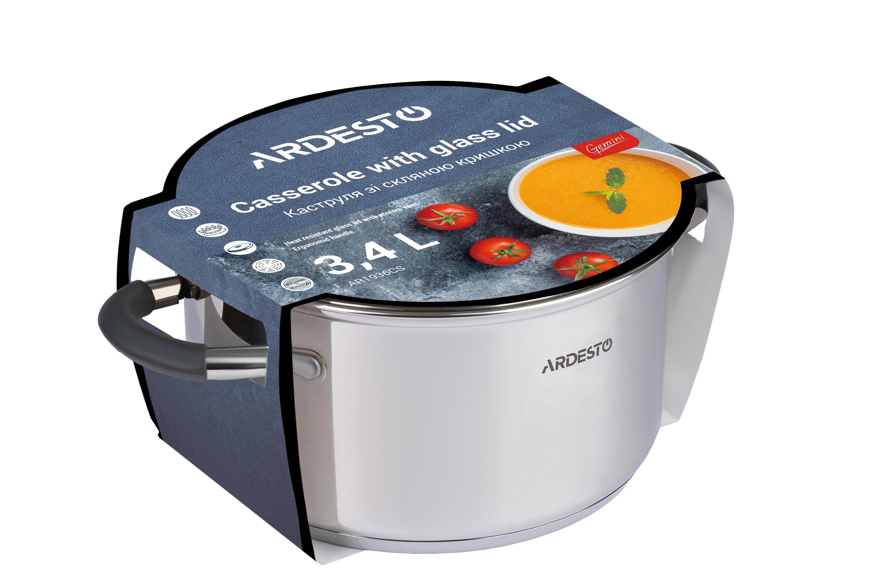 Каструля зі скляною кришкою Ardesto Gemini Salerno, 3.4л, нержавіюча сталь, силікон