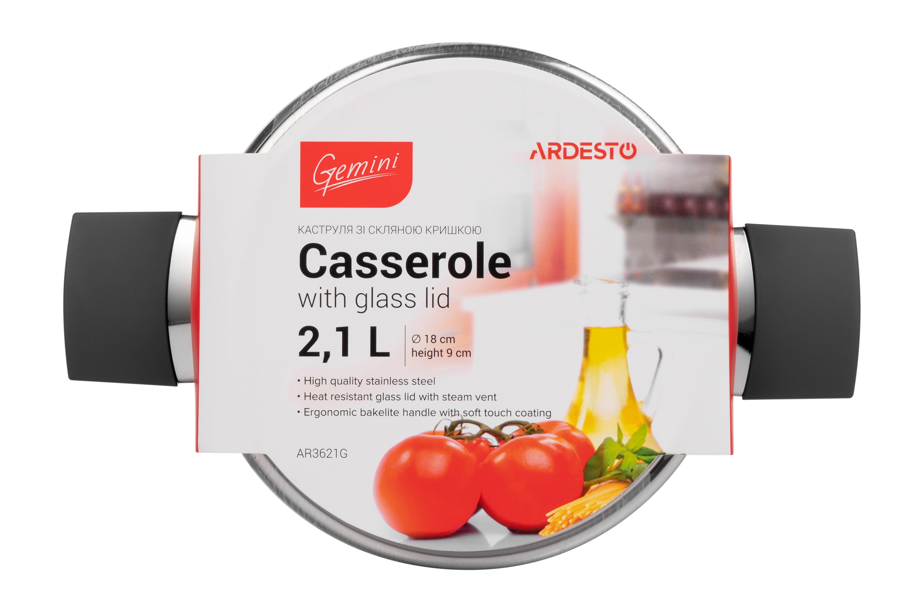 Каструля зі скляною кришкою Ardesto Gemini Trento, 2.1л, нержавіюча сталь, бакеліт