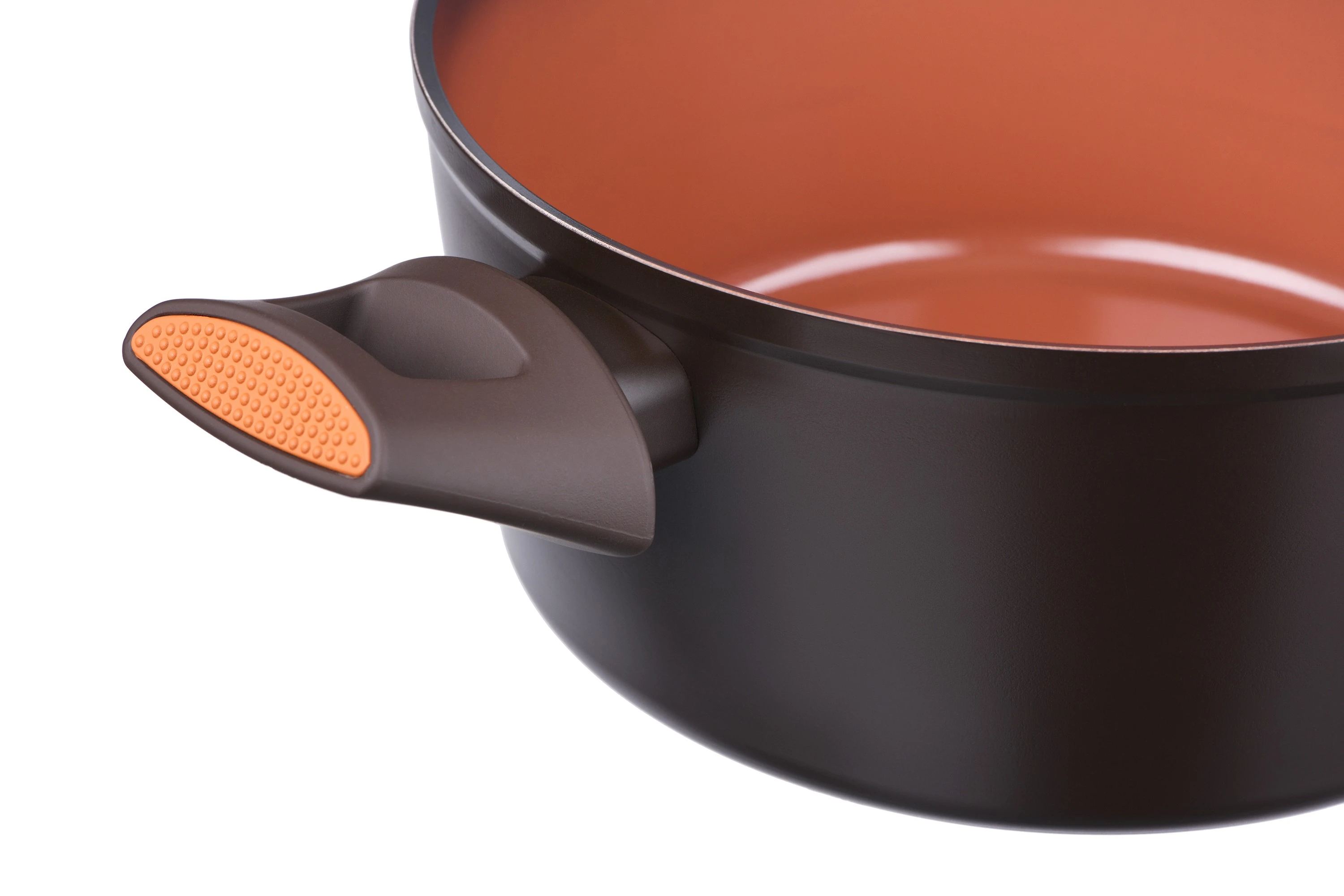 Каструля серії Terra Nature виготовлена з кованого алюмінію в коричневому кольорі з помаранчевими внутрішніми стінками. У серії посуду Terra Nature використовується антипригарне покриття Fusion. Ручки виготовлено з бакеліта з Soft-touch покриттям. Каструля поставляється з термостійкою скляною кришкою з отвором для пари та сумісна з усіма видами плит, включаючи індукційну.