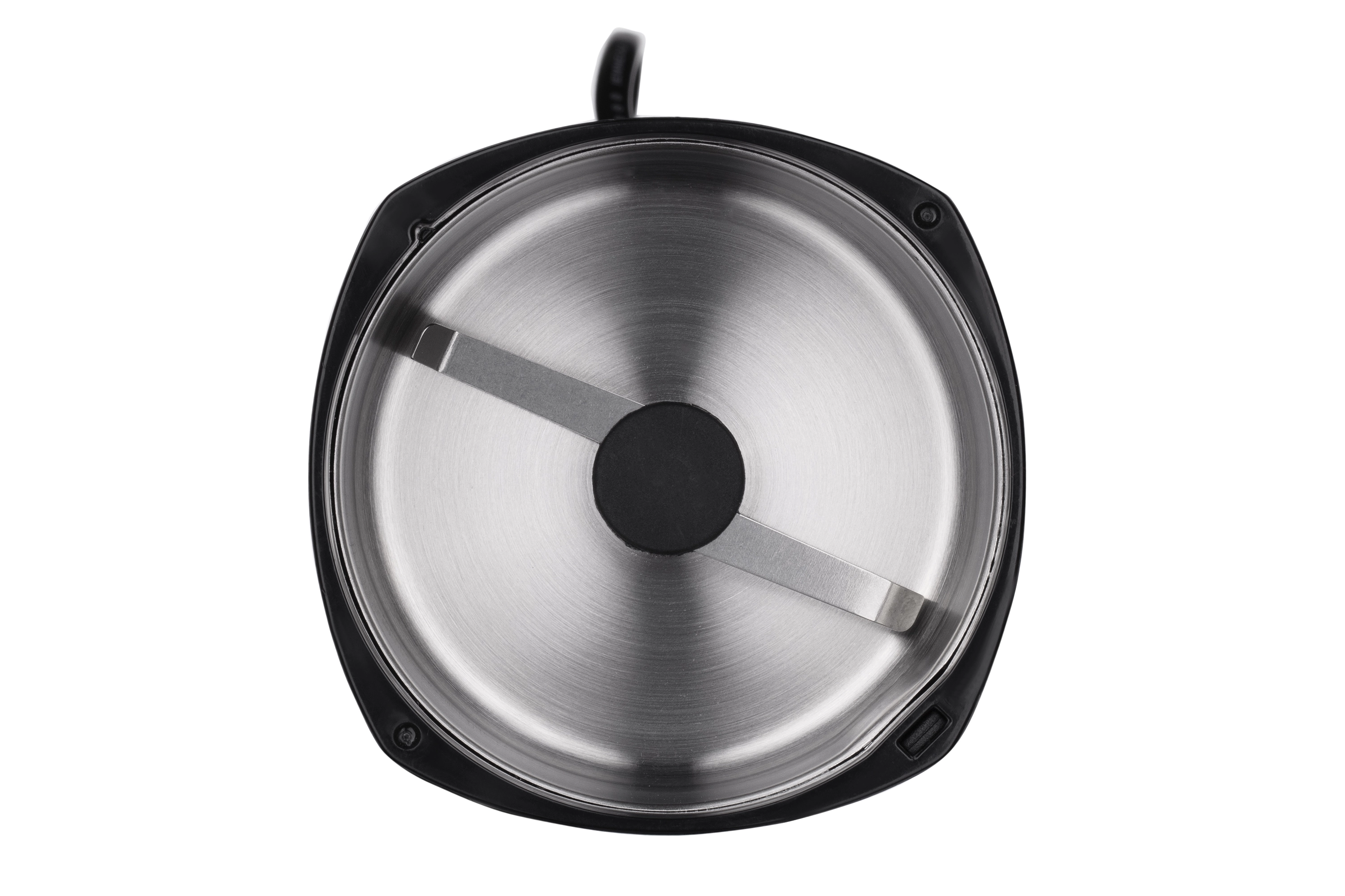 Роторна кавомолка у ергономічному пластиковому корпусі з потужністю 150 Вт, знімним контейнером на 45 г, сталевими лезами та можливістю подрібнення горіхів і спецій.