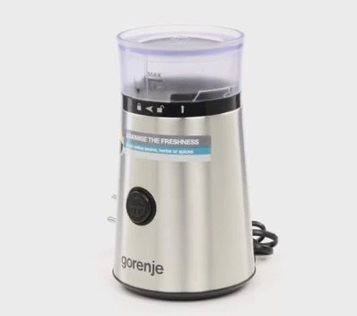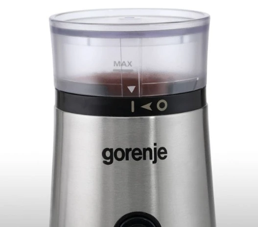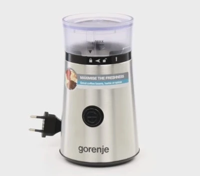 Кавомолка Gorenje SMK150B. Стильна кавомолка з прозорою кришкою та потужним двигуном 150 Ватт. Корпус виготовлений з нержавіючої сталі+пластик, а ніж та чаша – з якісної нержавіючої сталі. Особливістю даної моделі є підсвічування кнопок керування. Для безпеки передбачено увімкнення приладу лише при закритій кришці. Чаша містить максимально 60 грам кавових зерен.