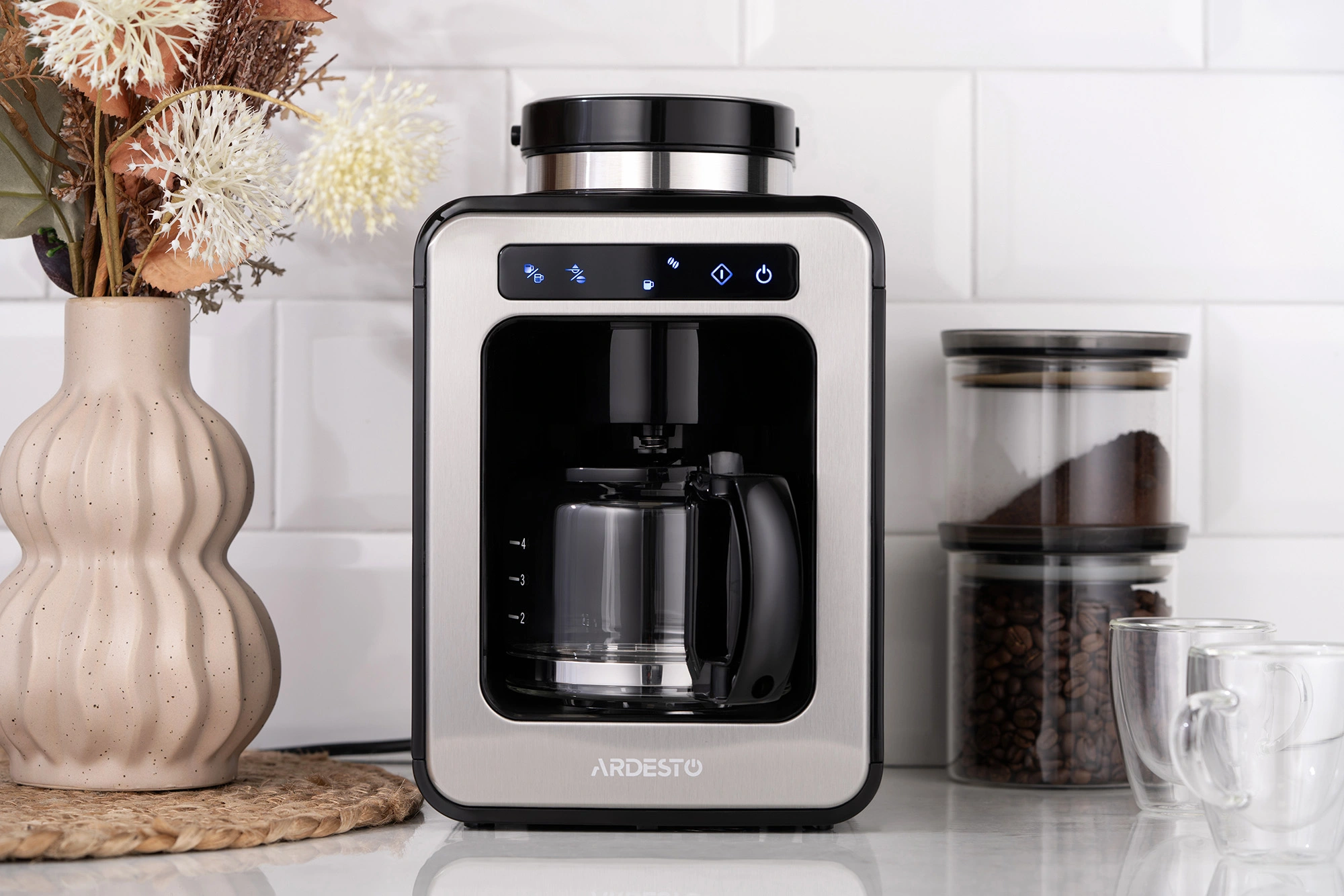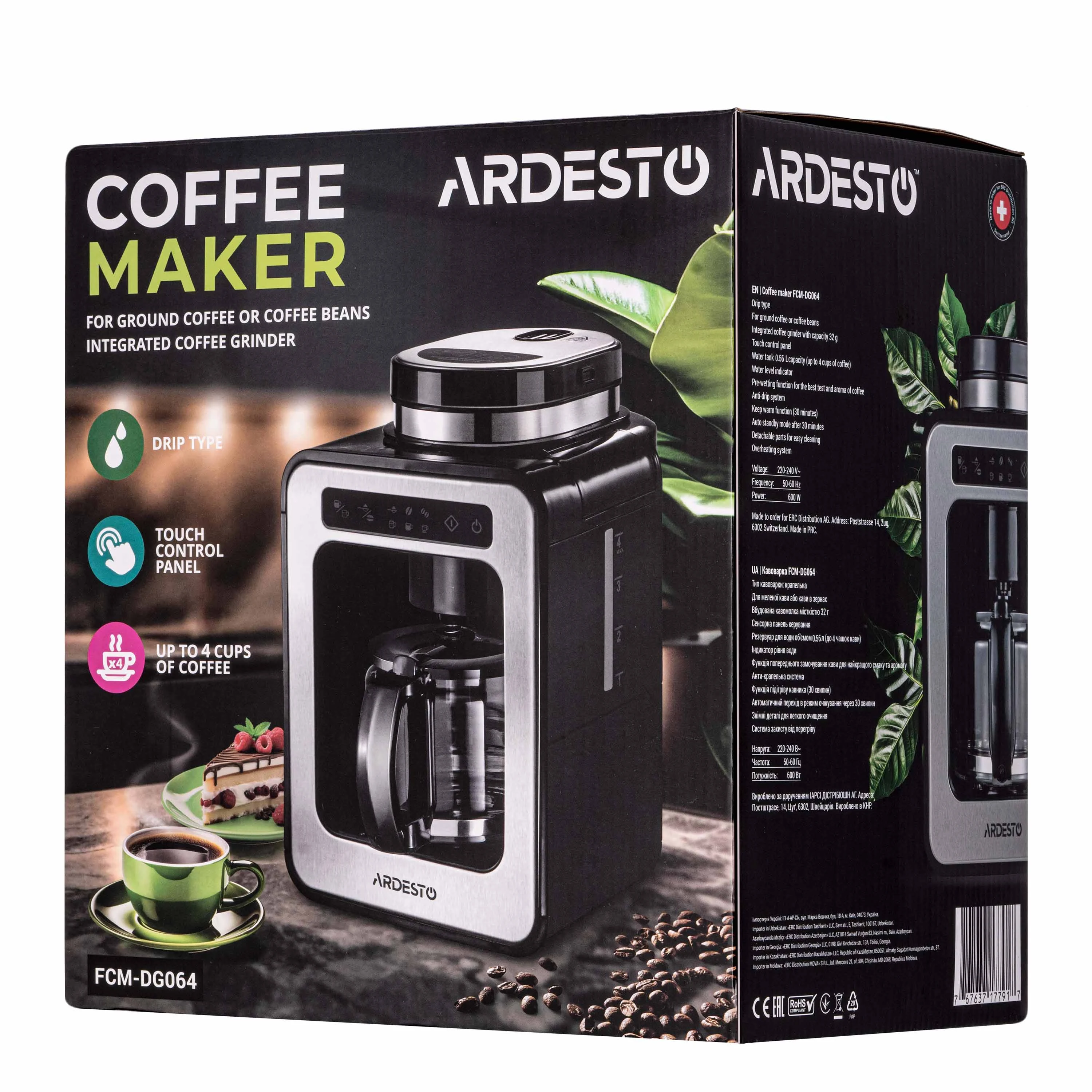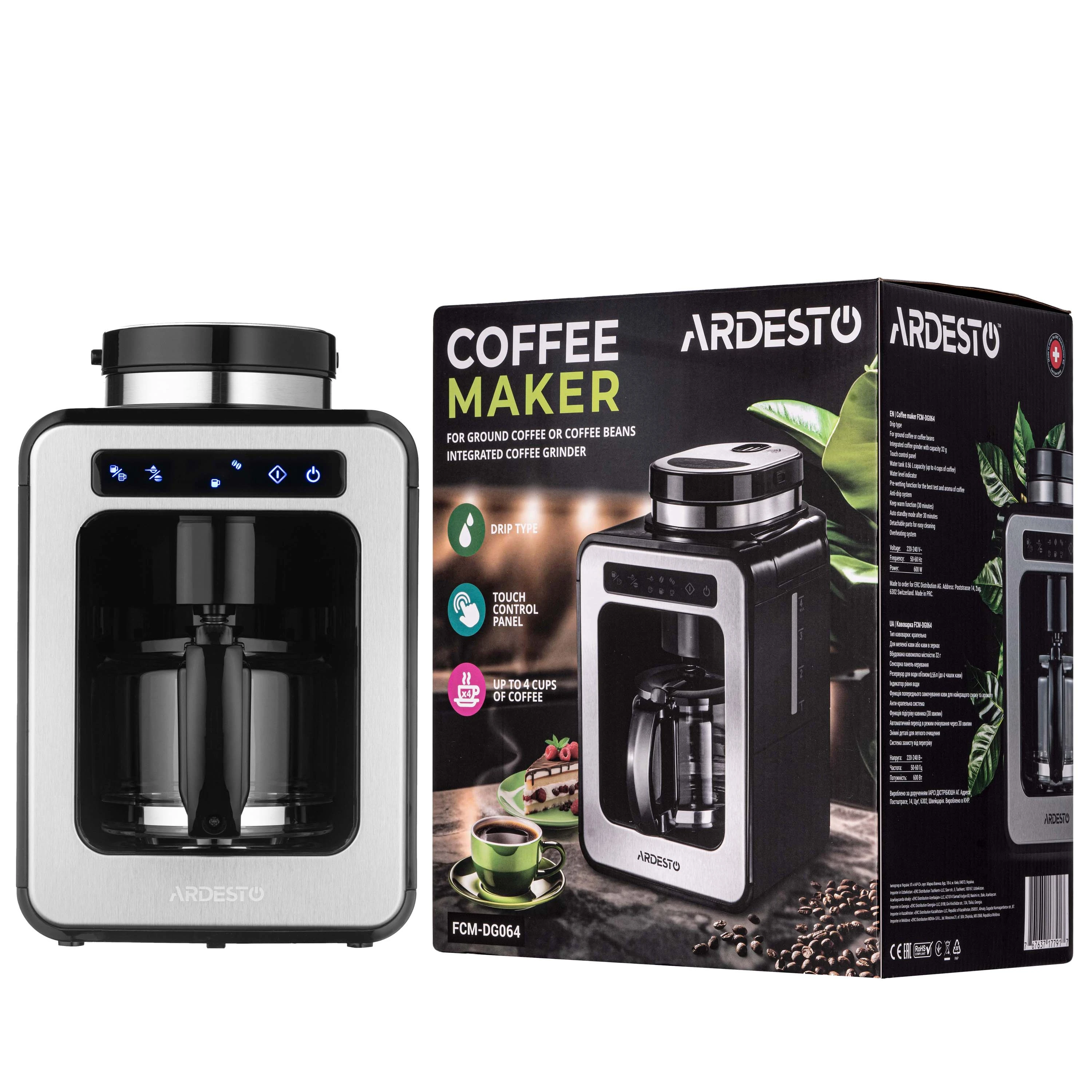 Кавоварка Ardesto крапельна 0.5л, зерно + мелена, дисплей, сріблясто-чорний