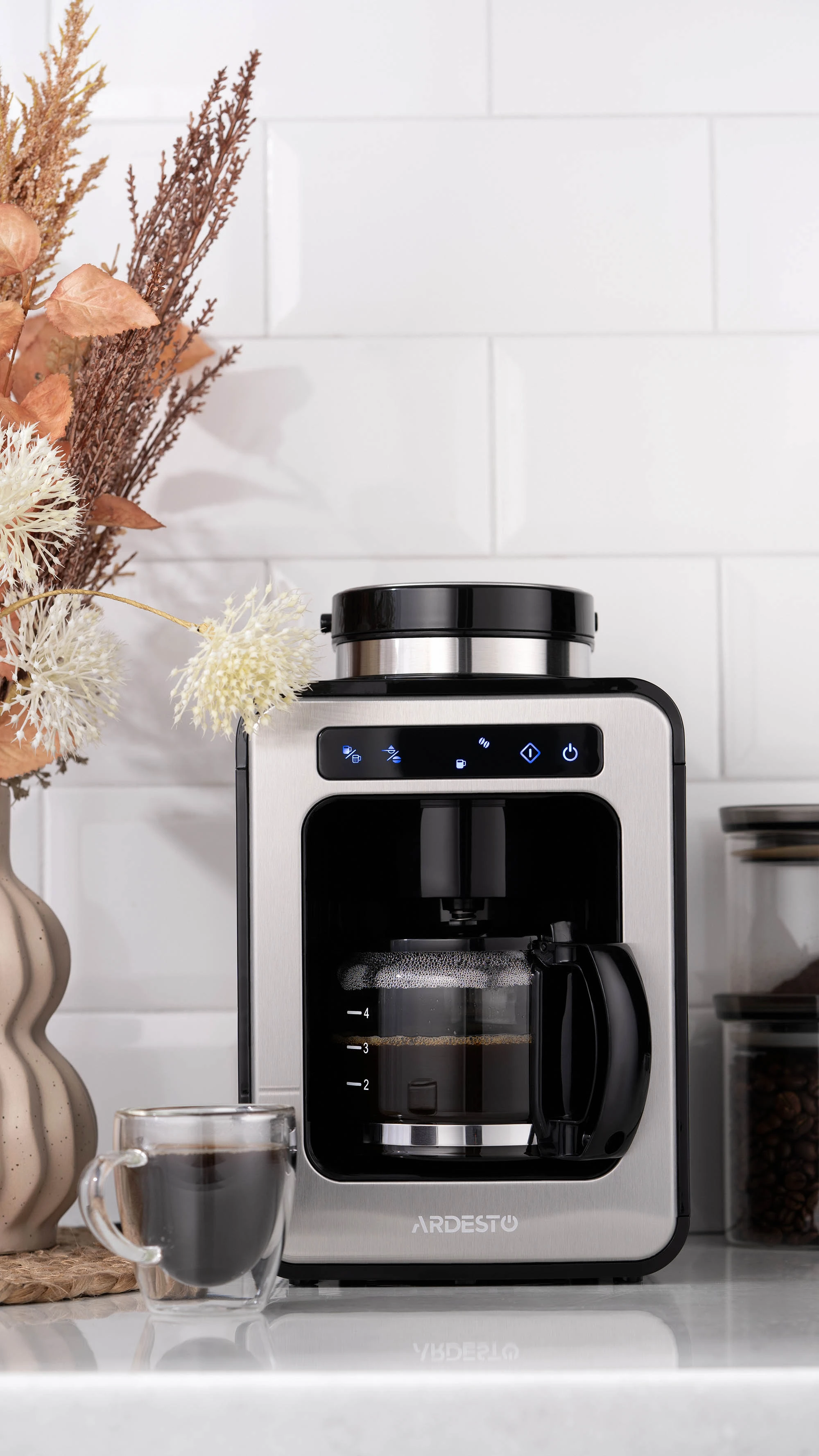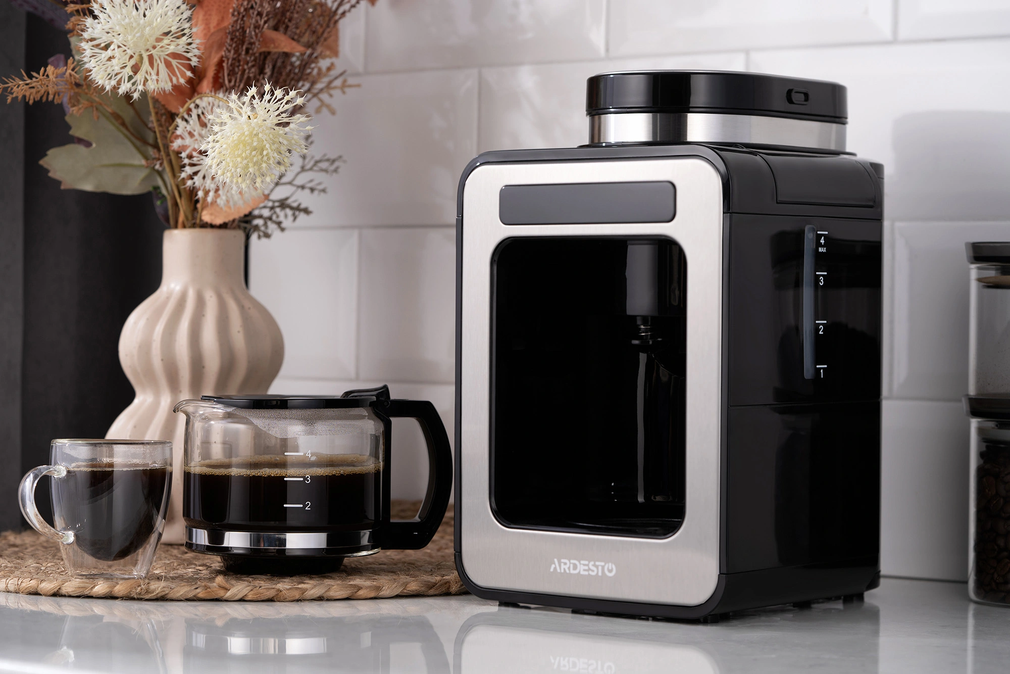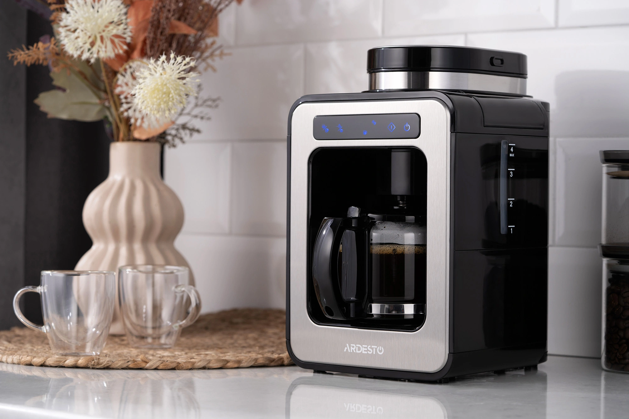 Кавоварка Ardesto крапельна 0.5л, зерно + мелена, дисплей, сріблясто-чорний