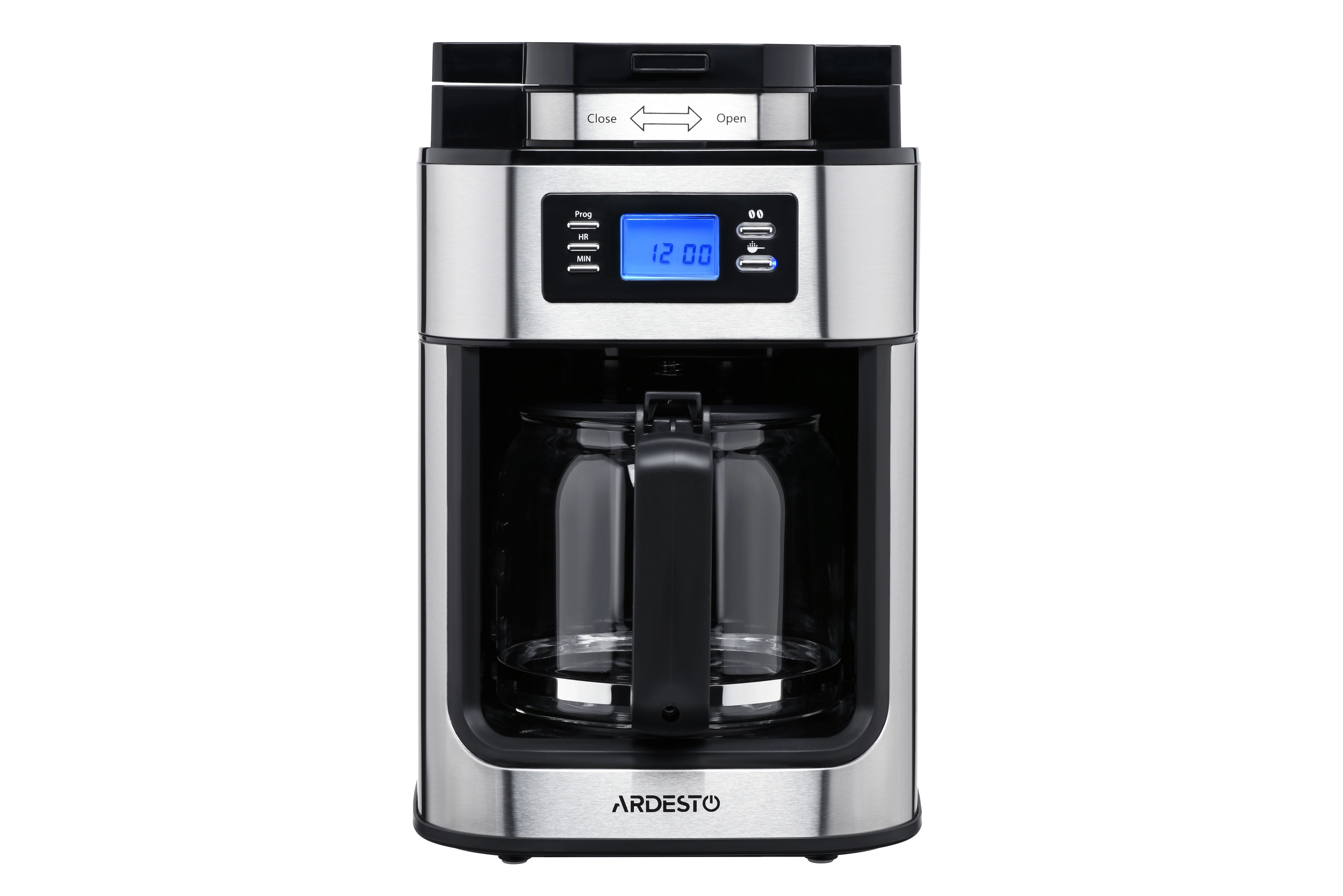 Кавоварка Ardesto крапельна Steel Collection 1.2л, зерно + мелена, дисплей, сріблясто-чорний