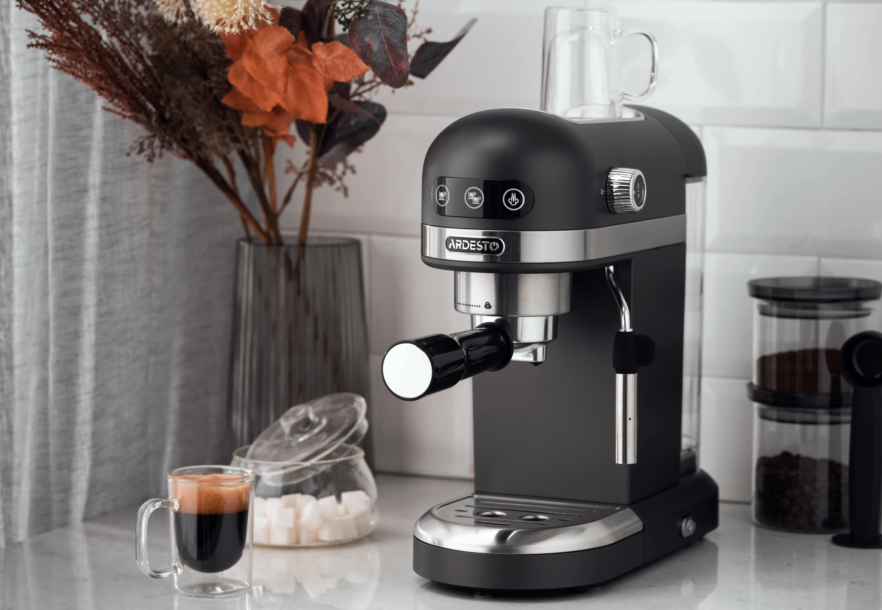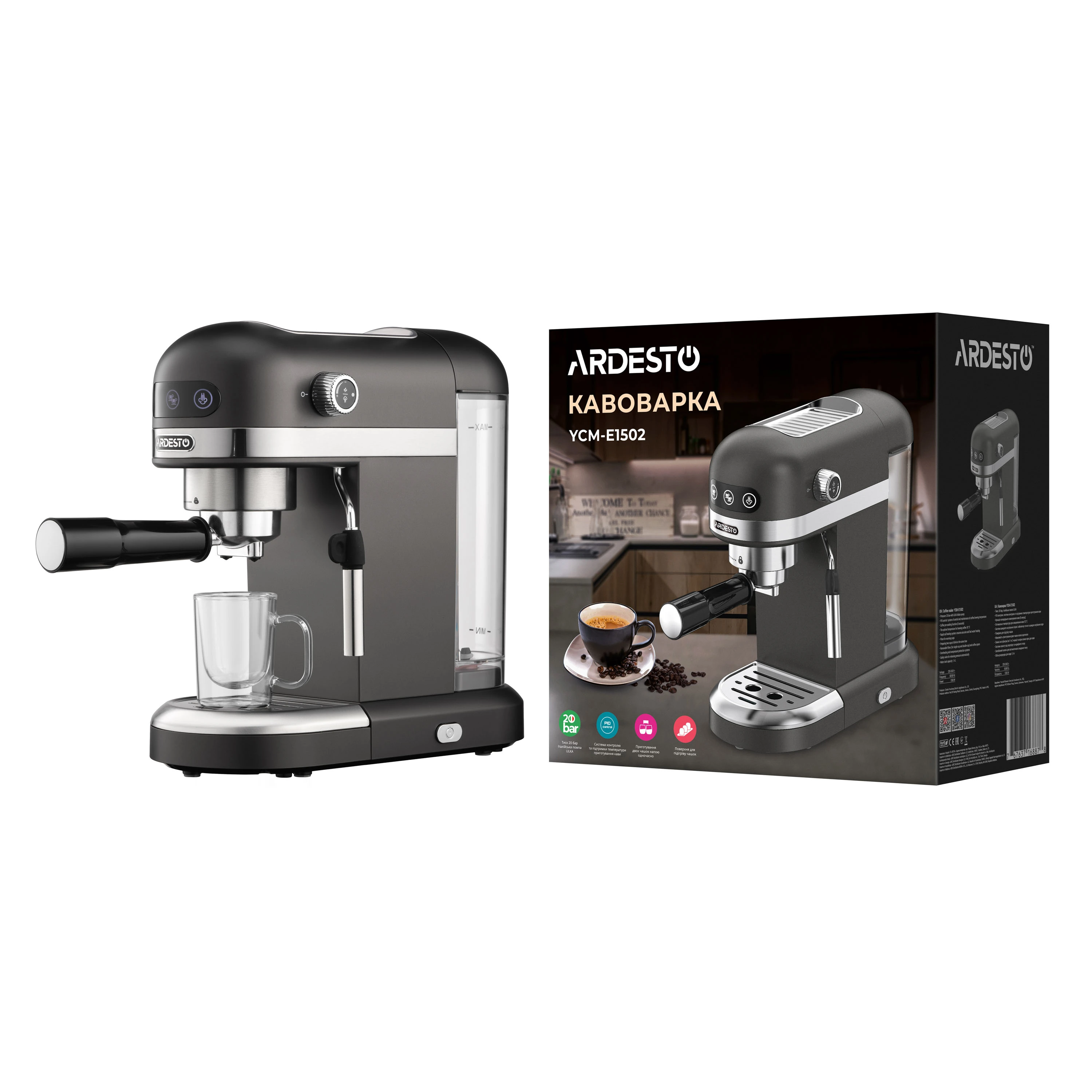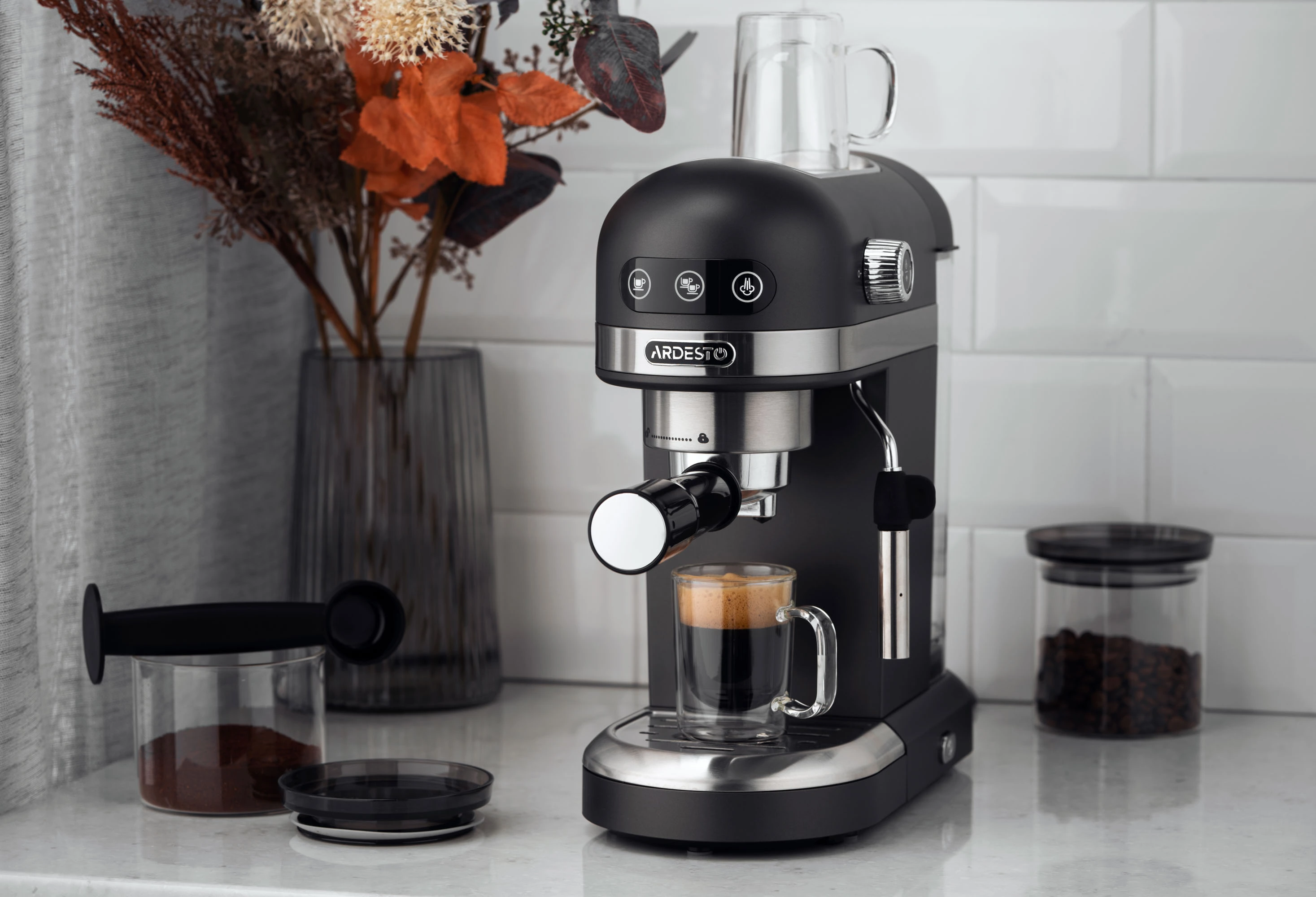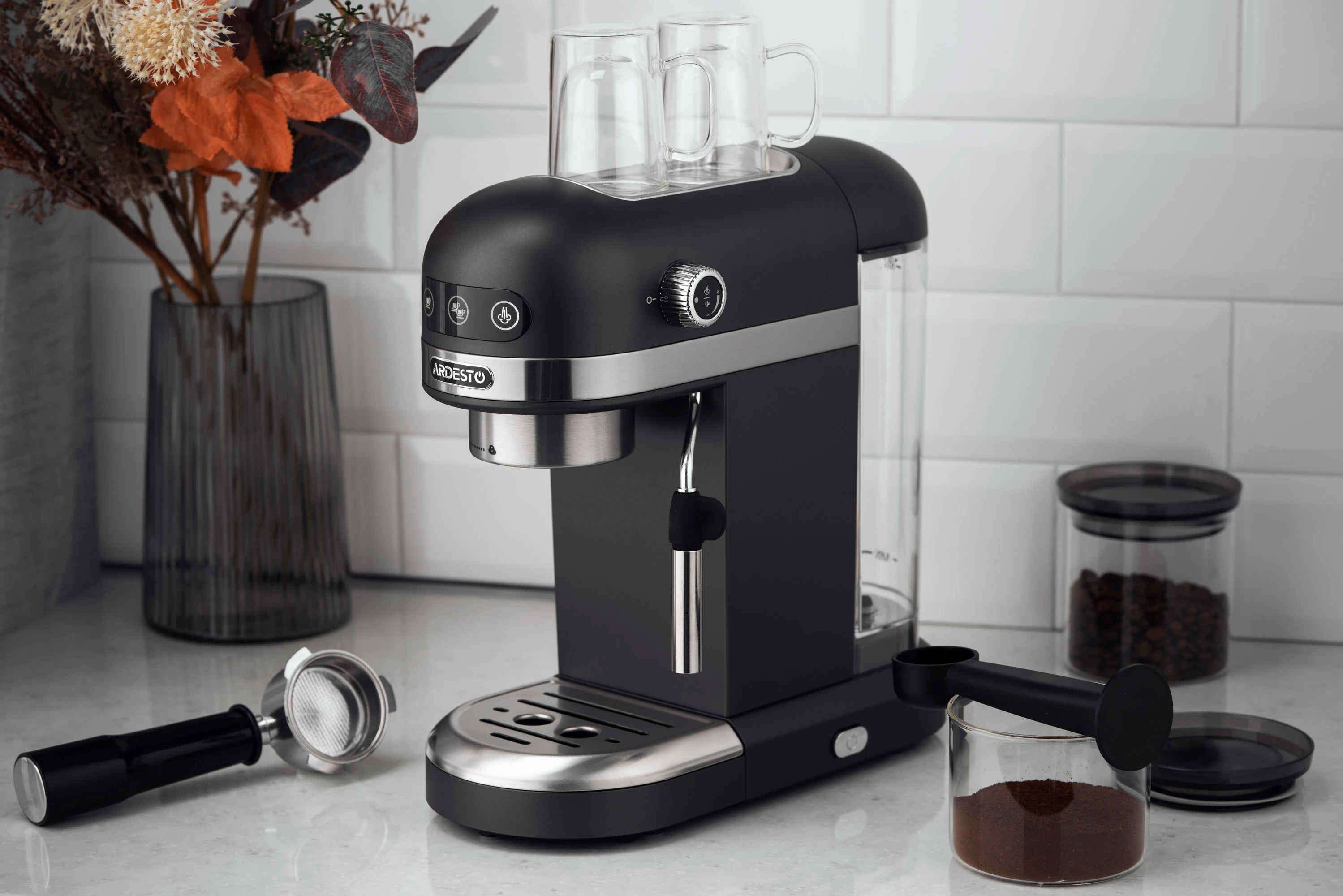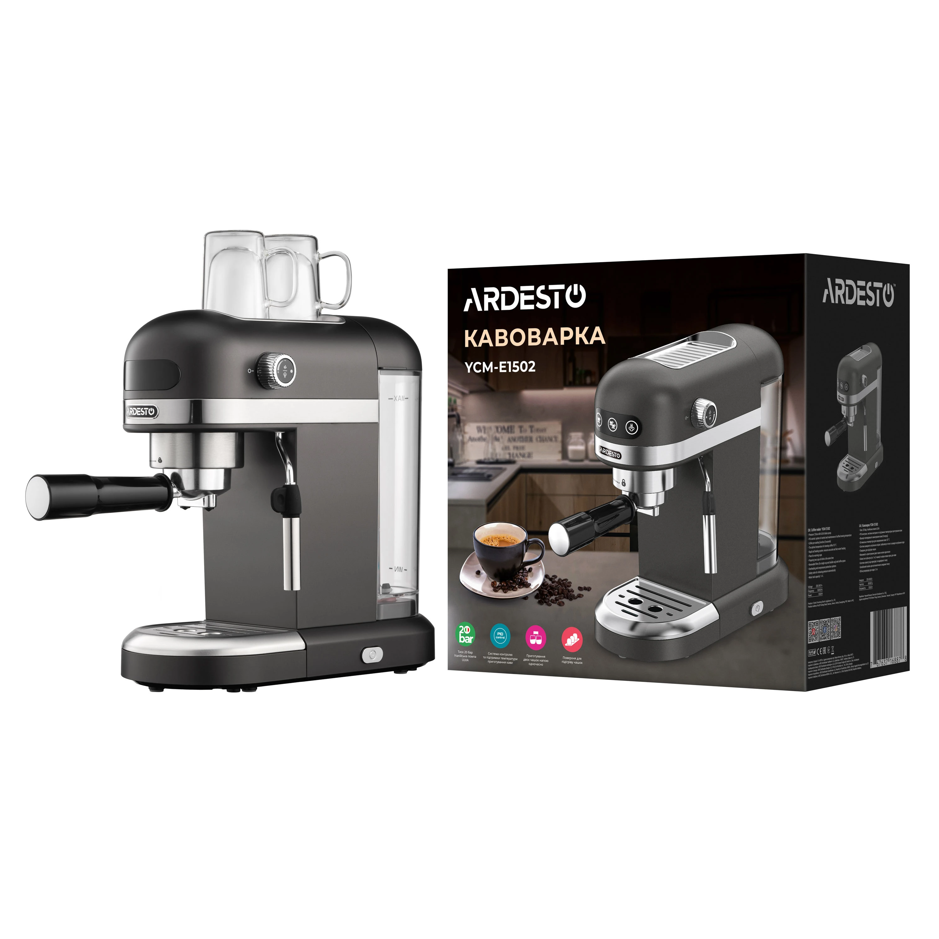 Кавоварка Ardesto ріжкова 1.4л, мелена, ручний капучинатор, підігрів чашок, чорний