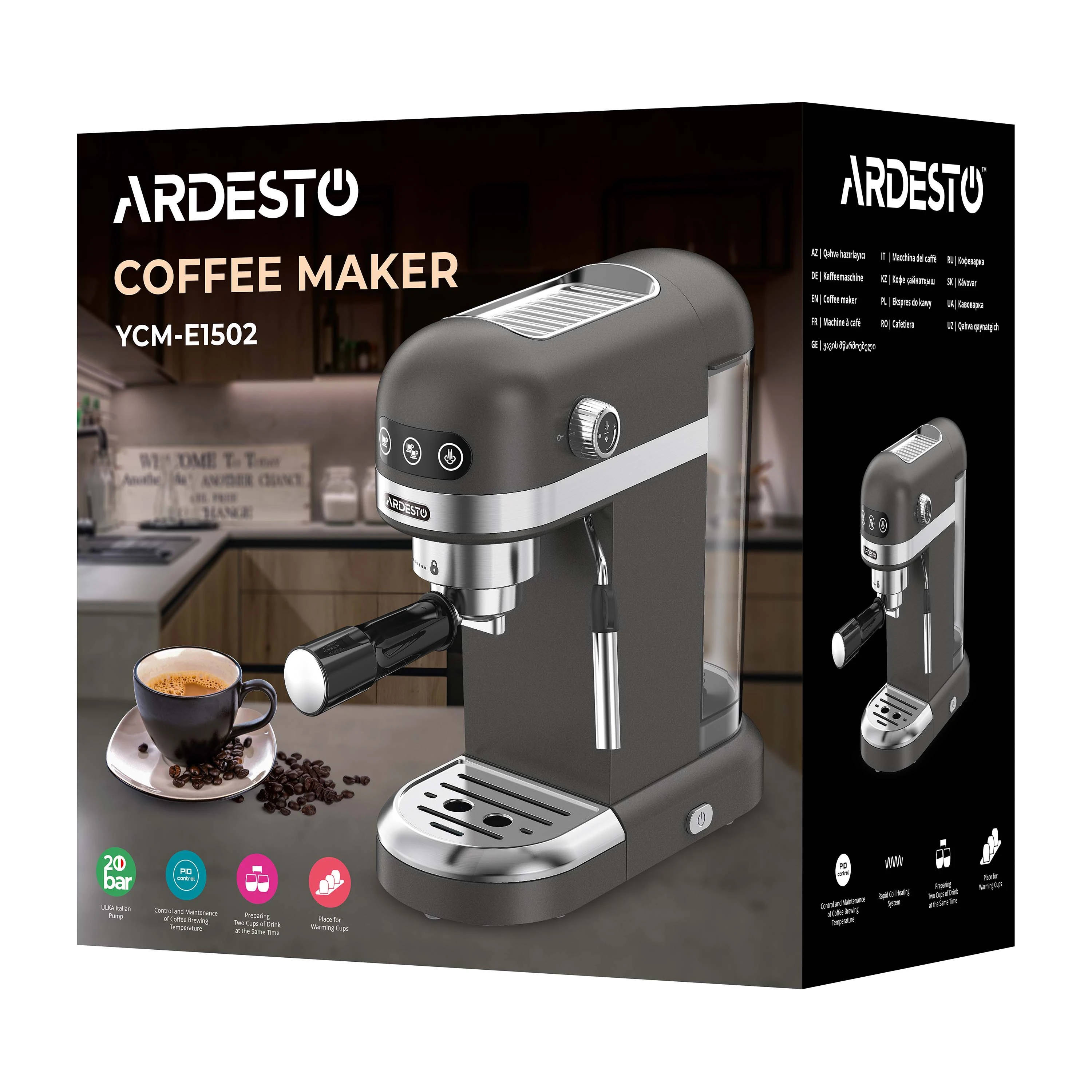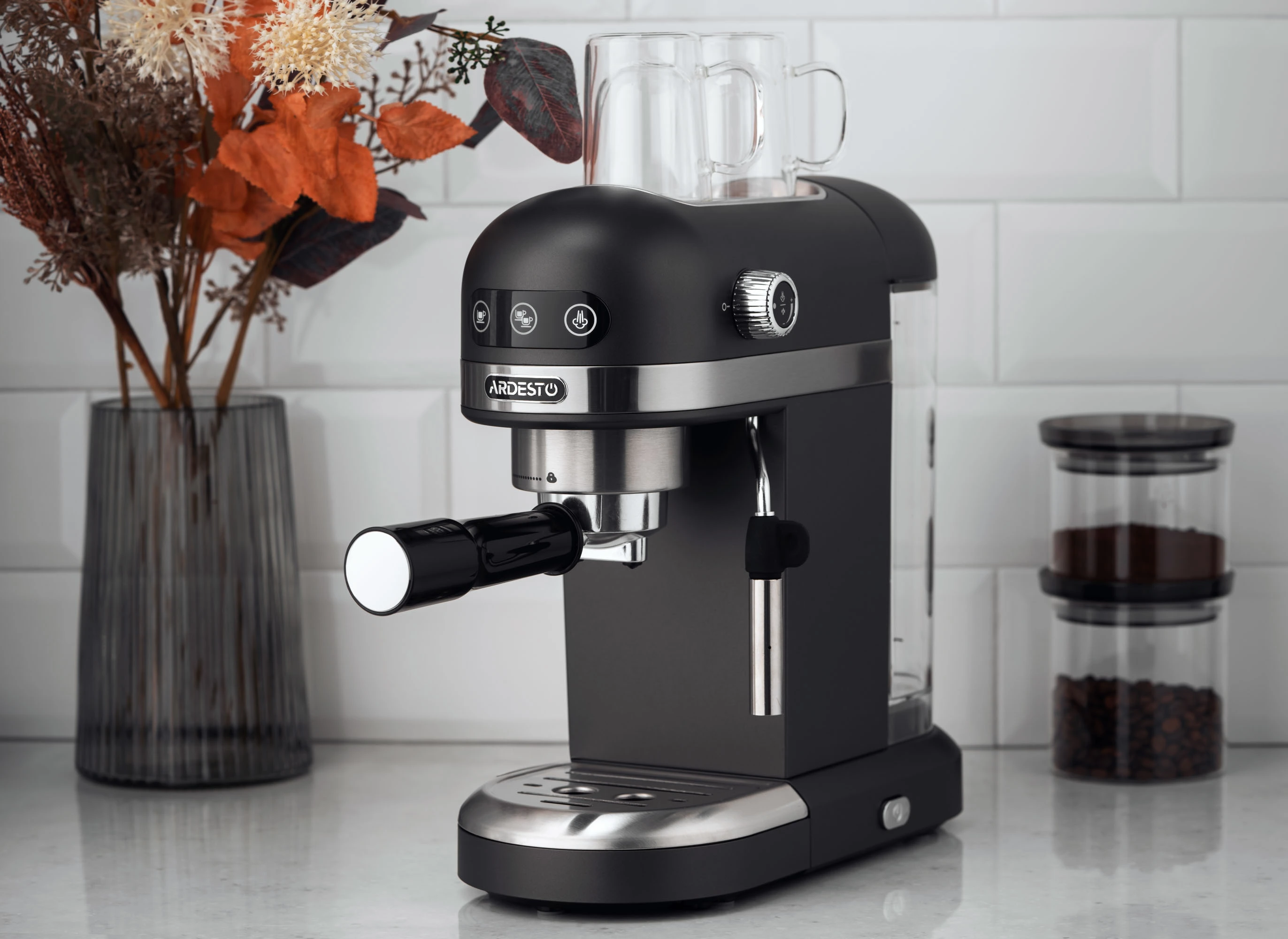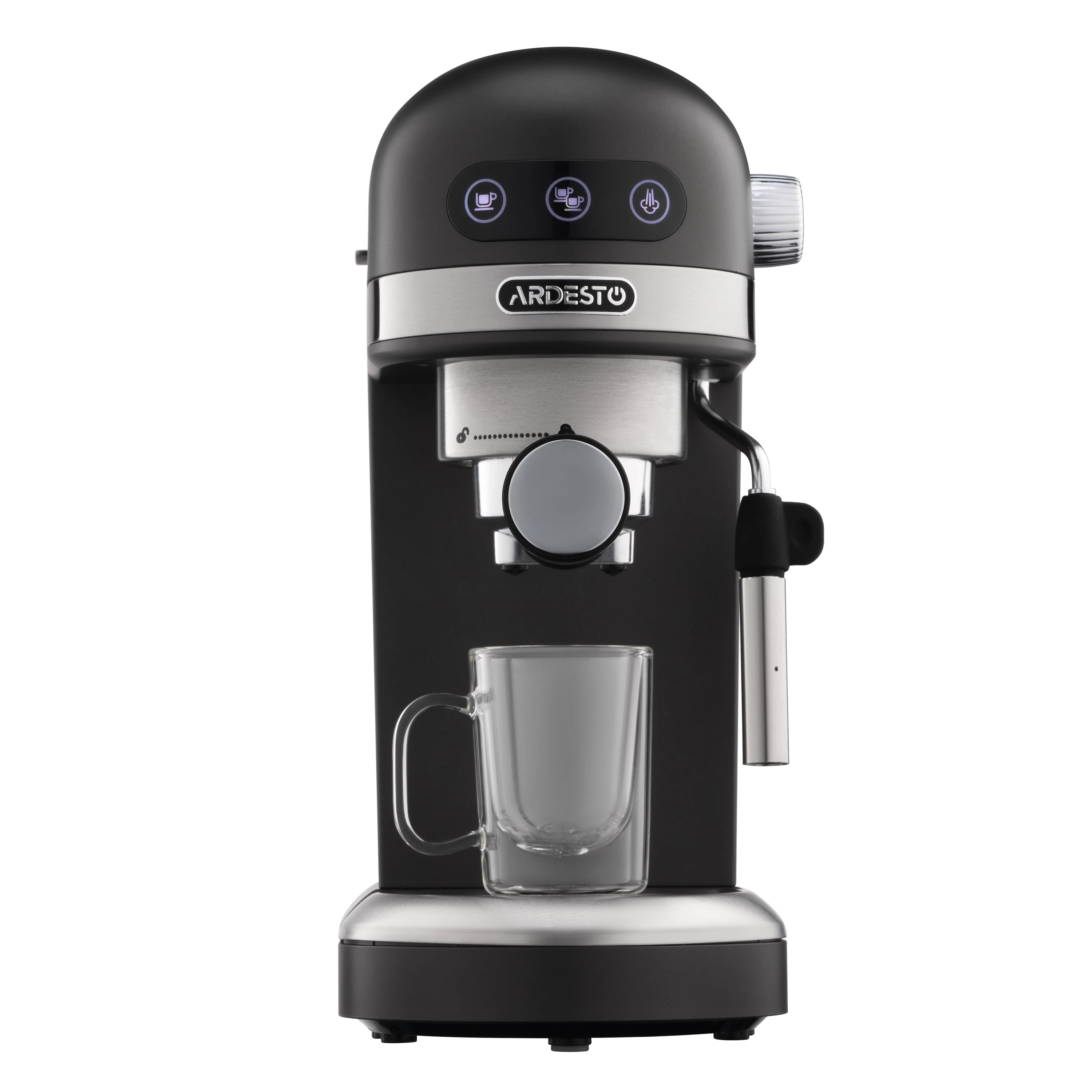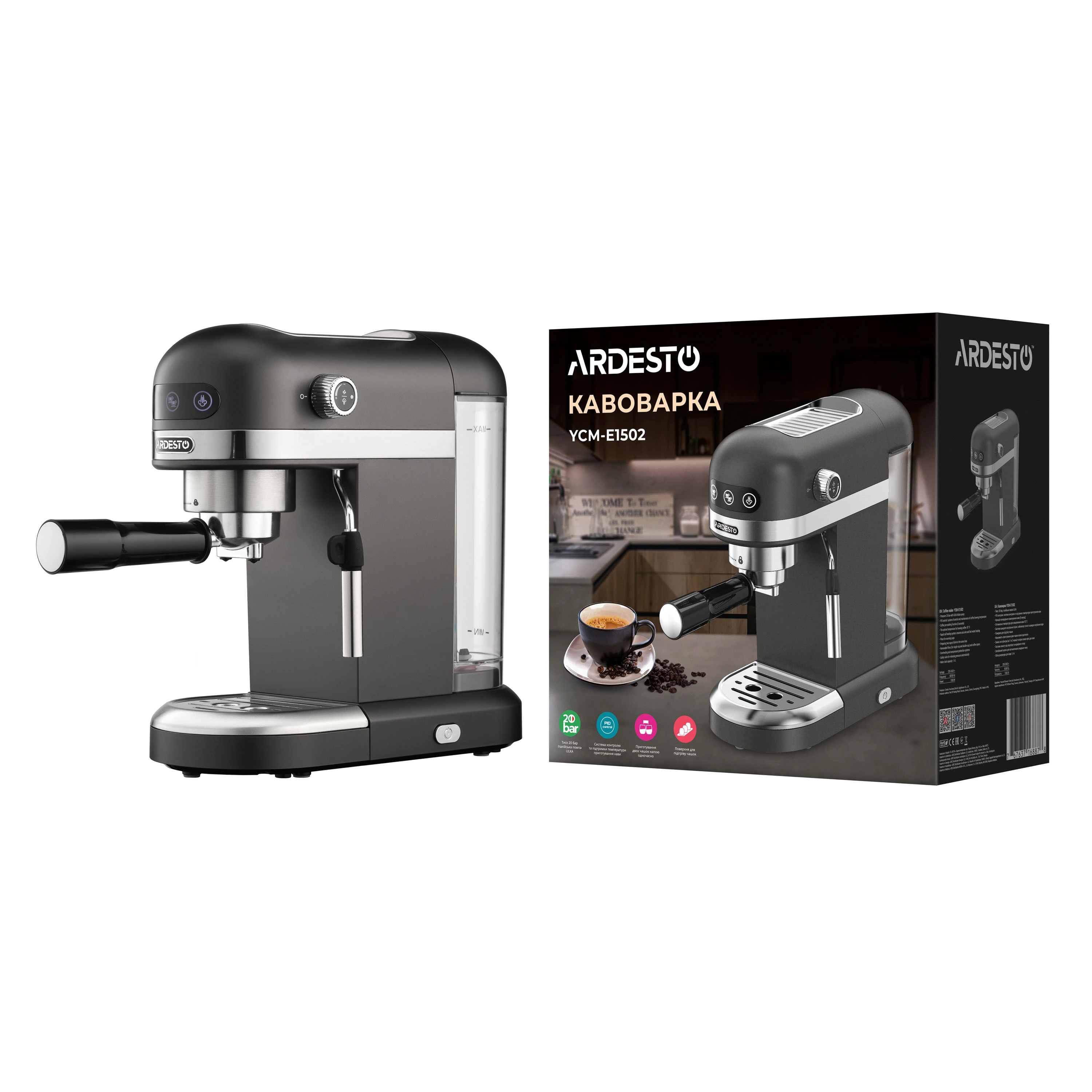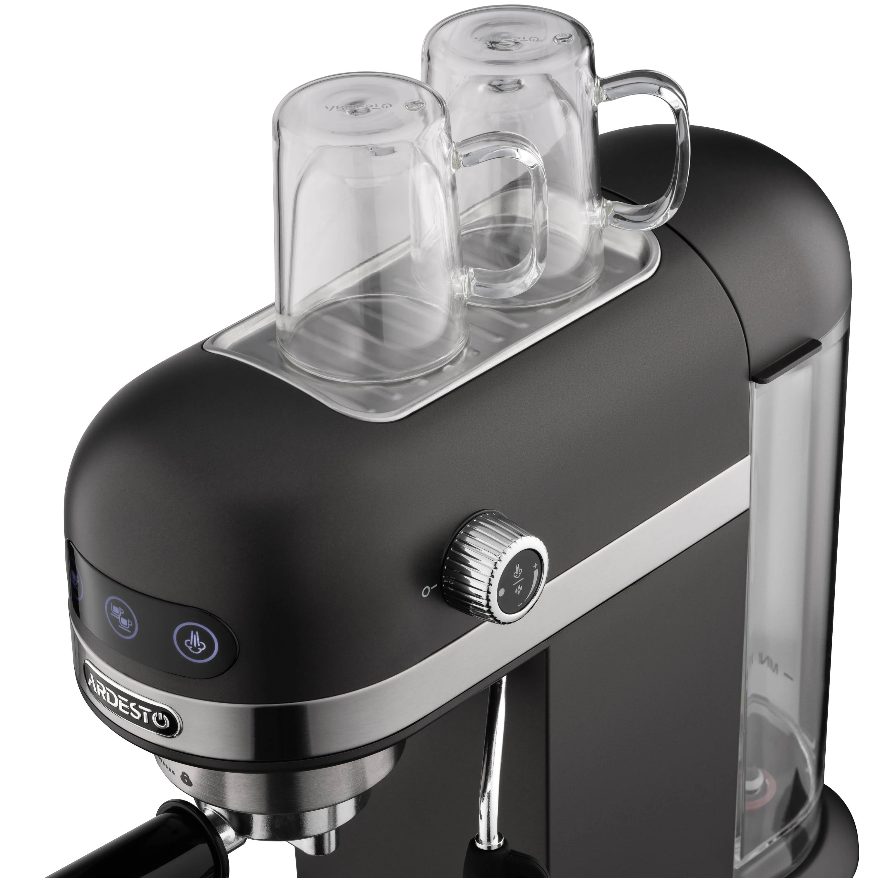 Кавоварка Ardesto ріжкова 1.4л, мелена, ручний капучинатор, підігрів чашок, чорний