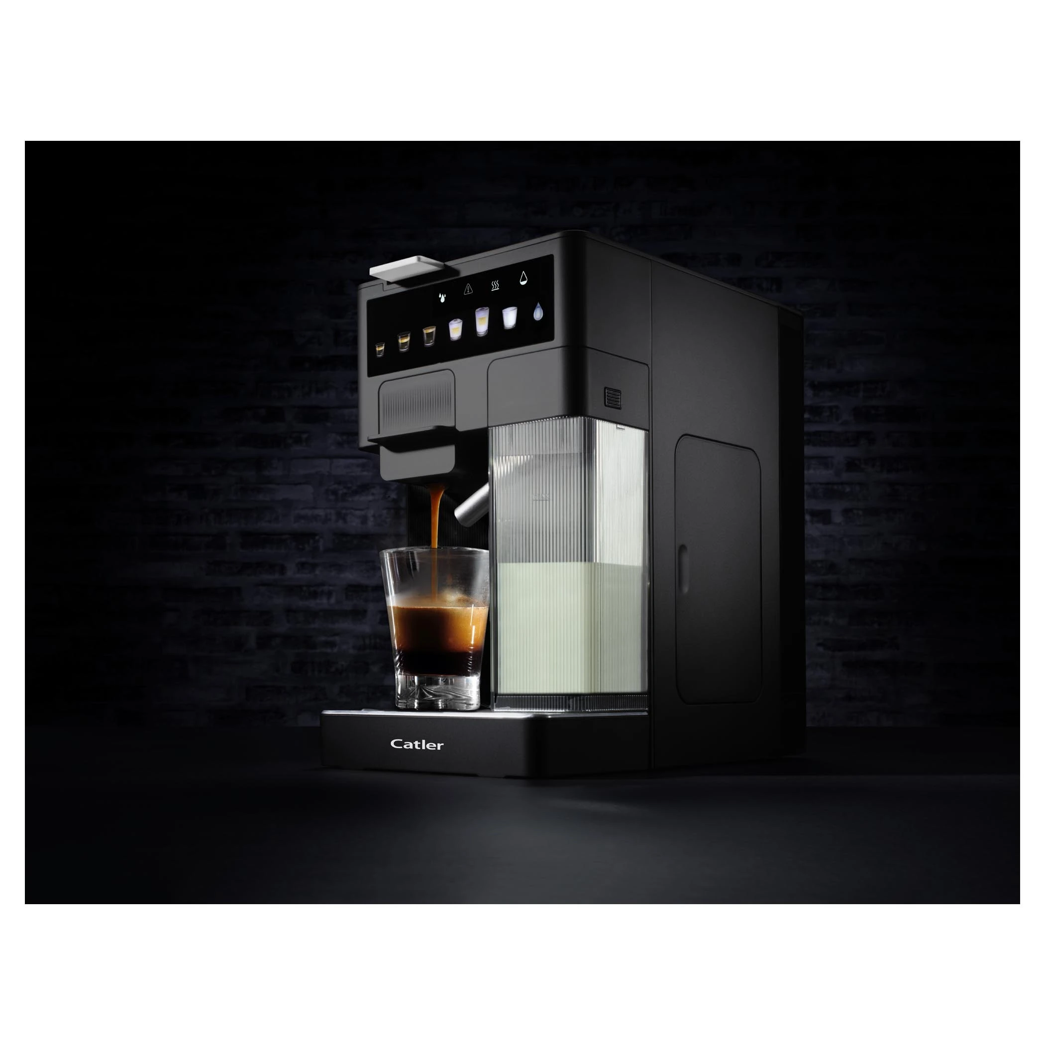 Капсульна кавоварка Catler Renzo ES751BRENZO поєднує стильний дизайн із функціональністю: тиск 20 бар, резервуар для води на 1,6 л, сенсорний дисплей та підтримка як капсул, так і меленої кави. Оснащена адаптерами для різних типів капсул, перехідником для меленої кави й резервуаром для молока зі спінювачем — для приготування ідеального еспресо, латте або капучино одним дотиком.