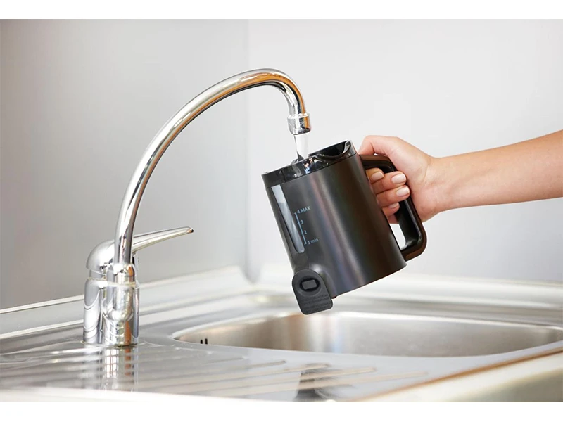 Після використання вийміть глечик із приладу, надіньте водозахисний ковпачок на контактний модуль і просто промийте глечик під проточною водою.
