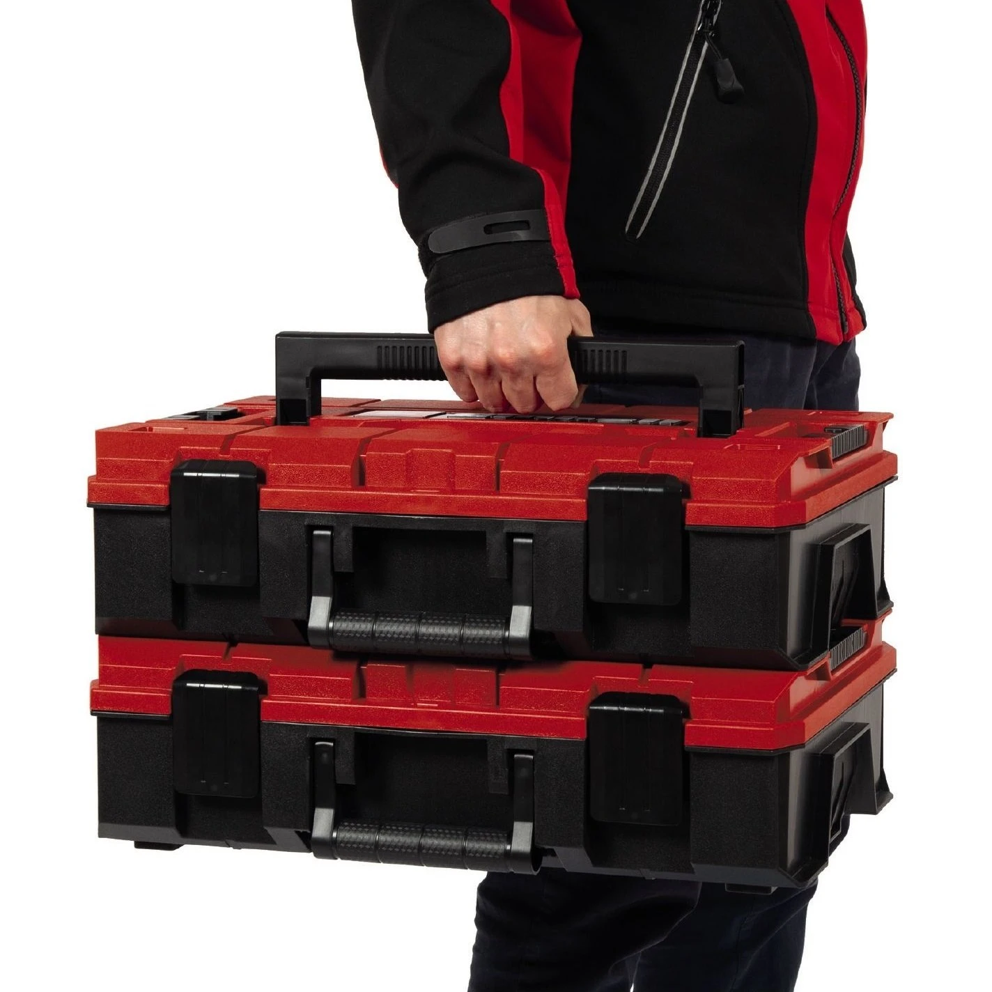 Кейс пластиковий універсальний Einhell E-Case S-F з роздільниками забезпечує простий спосіб зберігання та зручне транспортування. Системний кейс ідеально підходить для зберігання та транспортування як інструментів, так різноманітних аксесуарів, таких як свердла або шурупи.