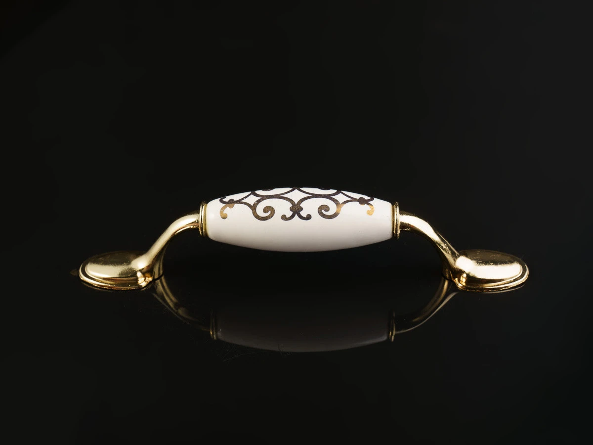Мебельная ручка, керамика, золотистый, 96мм