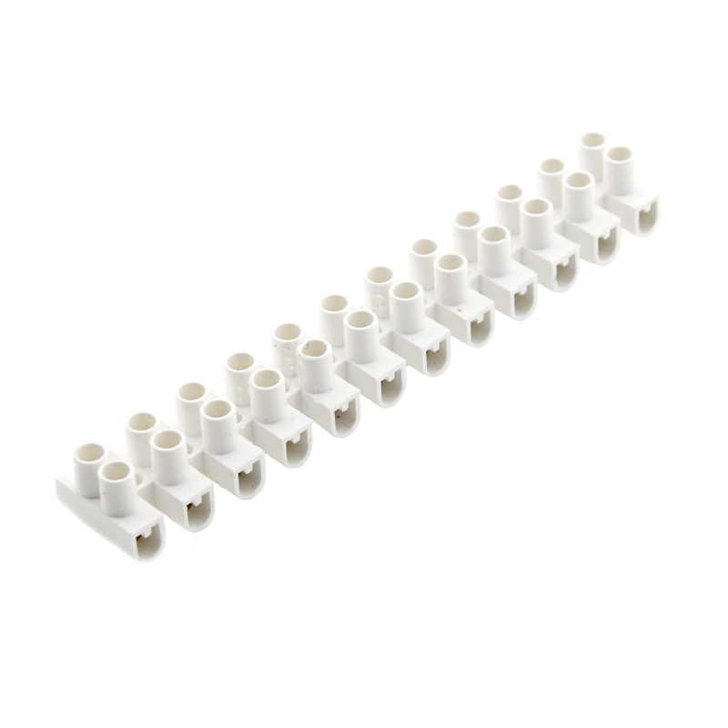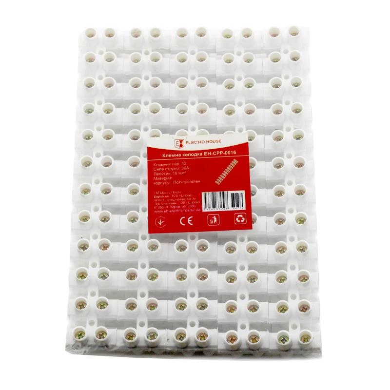 Клеммная колодка 16 мм² 30A, полипропилен EH-CPP-0016 от ElectroSpace – это надежный и удобный электротехнический аксессуар, предназначенный для безопасного и эффективного соединения электропроводов. Благодаря высококачественному материалу корпуса из полипропилена, клеммная колодка не поддерживает горение, выдерживает воздействие низких температур и обеспечивает длительную эксплуатацию даже в условиях повышенной нагрузки. Это значительно повышает безопасность электромонтажа и сводит к минимуму риски окисления или перегрева. Конструкция предусматривает 12 контактных пар из легко разделяемых латуни, что позволяет гибко адаптировать изделие к любым монтажным условиям. Компактные размеры делают клеммную колодку идеальным решением для использования в распределительных коробках. Изделие отличается стойкостью к ударам, маслам, щелочам и растворителям, что делает его незаменимым для работы в разных условиях. Материал клеммной колодки соответствует современным экологическим стандартам, а долговечность и надежность подтверждают ее популярность среди профессионалов.