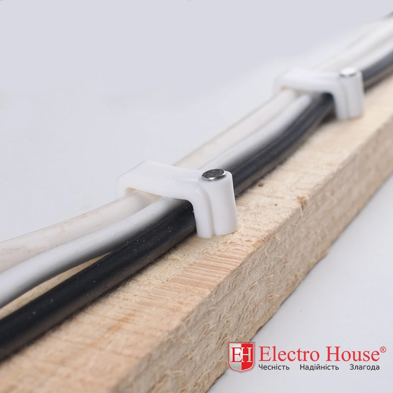 Клипса монтажная с гвоздем плоская 4 мм, 100 шт. EH-WKF-01 от ElectroSpace - надежное решение для крепления электропроводов на различных поверхностях, в частности при выполнении наружных монтажных работ. Она идеально подходит для фиксации проводов к стенам, потолкам и другим горизонтальным или вертикальным плоскостям. Клипса изготовлена из высококачественной, негорючей пластмассы, что обеспечивает ее долговечность и безопасность при использовании в условиях различных температур и влажности. В комплекте имеется прочный гвоздь из покрытой цинком стали, что гарантирует высокую коррозионную стойкость и надежность при монтаже. <Эта клипса также обладает защитными свойствами от атмосферных и химических воздействий, что делает ее идеальным выбором для использования в различных наружных и внутренних условиях. Благодаря большому диапазону рабочих температур от -20°C до +75°C, она подходит для монтажа как в холодных, так и в теплых климатических зонах, выдерживая перепады температур без потери своих эксплуатационных характеристик. <Клипса монтажная с гвоздем плоская 4 мм, 100 шт. от ElectroSpace обеспечивает стабильное и безопасное расположение электропроводов, что позволяет избежать их случайного повреждения и обеспечить правильное функционирование электрической сети. Это универсальный и надежный продукт, который имеет длительный срок службы и не требует частого обслуживания, что делает его превосходным выбором для любых монтажных работ.
