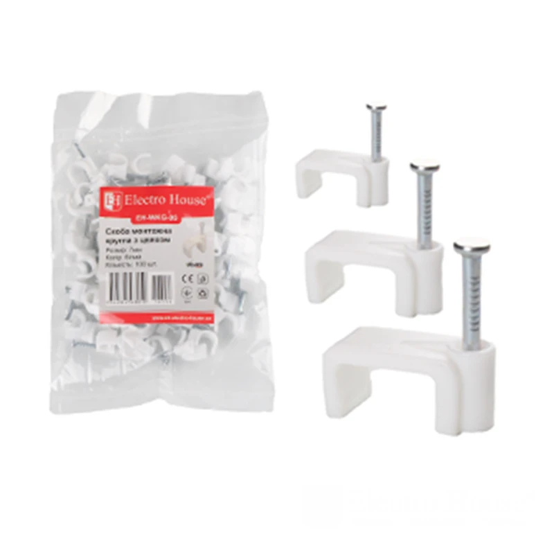 Клипса монтажная с гвоздем плоская 6 мм, 100 шт. EH-WKF-03 от ElectroSpace - надежное решение для крепления электропроводов на различных поверхностях, в частности при выполнении наружных монтажных работ. Она идеально подходит для фиксации проводов к стенам, потолкам и другим горизонтальным или вертикальным плоскостям. Клипса изготовлена из высококачественной, негорючей пластмассы, что обеспечивает ее долговечность и безопасность при использовании в условиях различных температур и влажности. В комплекте имеется прочный гвоздь из покрытой цинком стали, что гарантирует высокую коррозионную стойкость и надежность при монтаже. <Эта клипса также обладает защитными свойствами от атмосферных и химических воздействий, что делает ее идеальным выбором для использования в различных наружных и внутренних условиях. Благодаря большому диапазону рабочих температур от -20°C до +75°C, она подходит для монтажа как в холодных, так и в теплых климатических зонах, выдерживая перепады температур без потери своих эксплуатационных характеристик. <Клипса монтажная с гвоздем плоская 6 мм, 100 шт. от ElectroSpace обеспечивает стабильное и безопасное расположение электропроводов, что позволяет избежать их случайного повреждения и обеспечить правильное функционирование электрической сети. Это универсальный и надежный продукт, который имеет длительный срок службы и не требует частого обслуживания, что делает его превосходным выбором для любых монтажных работ.