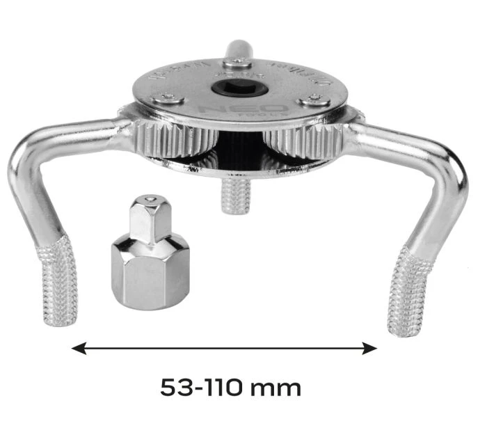 Ключ для масляних фільтрів NEO для професійних автомайстерень і автосервісів, а також для просунутих любителів. Ключ призначений для ефективного і правильного монтажу зовнішніх масляних фільтрів з металевим корпусом. Призначений для фільтрів діаметром від 53 до 110 мм. Включає перехідник на 3/8" та 1/2".