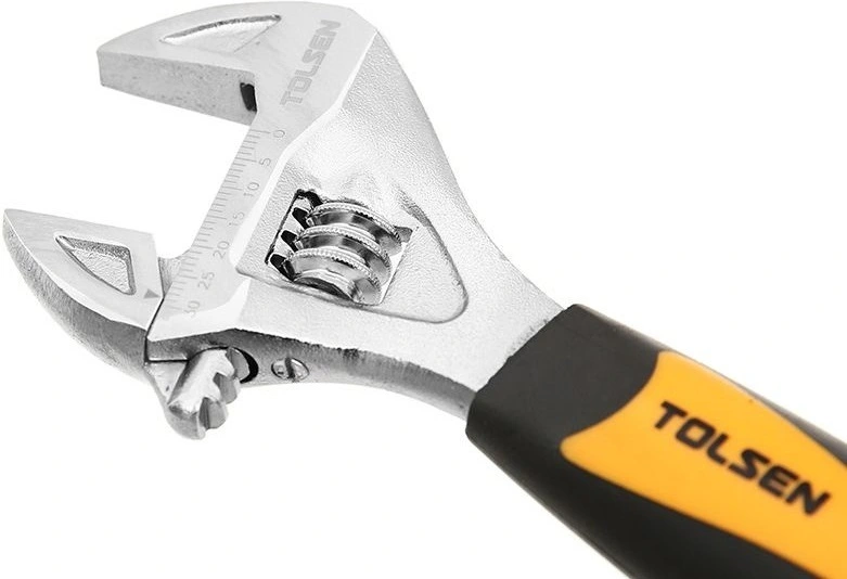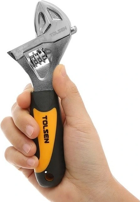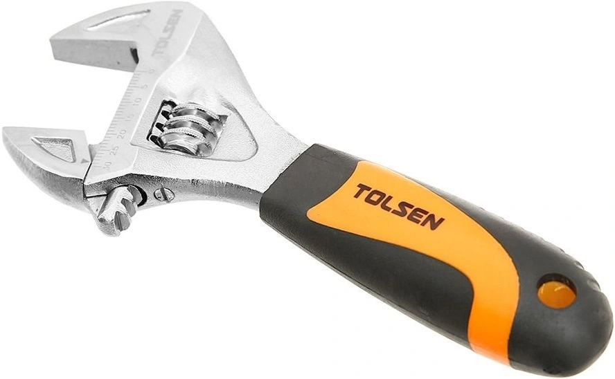Розвідний ключ Tolsen Профі 165 мм із робочим діапазоном 0–30 мм виготовлений із хромованадієвої сталі (CrV) та призначений для точного затягування або відкручування кріплень різного розміру.