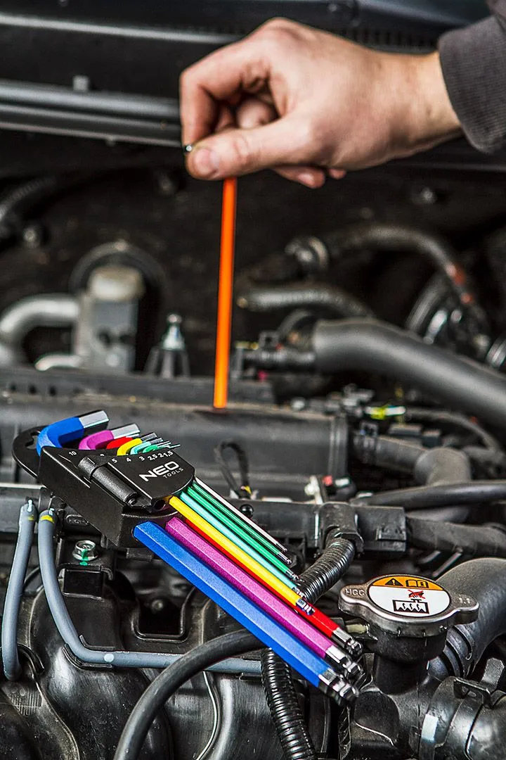 Ключі шестигранні Neo Tools, набір 9шт, кулястий наконечник, кольорові, сталь S2, 1.5-10мм