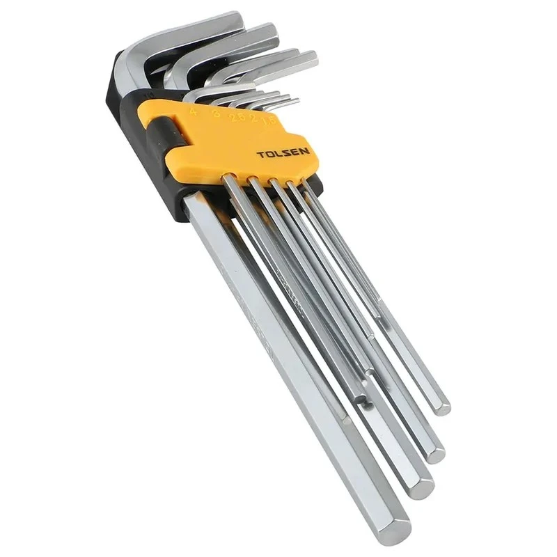 Ключі шестигранні Tolsen, набір 9шт, подовжені, довгі, кулястий наконечник, 1.5-10мм, CrV