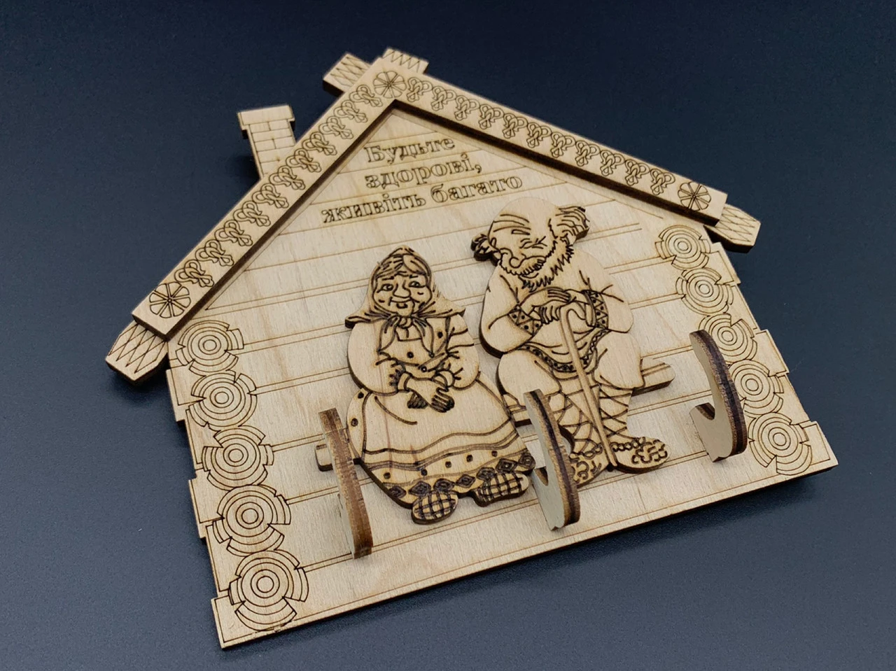 Ключница настенная деревянная, 17х15см, «Будьте здоровы, живите много», в форме дома 3 крючка