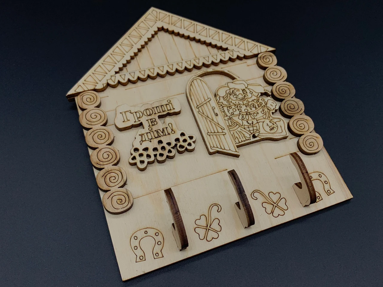 Ключница настенная деревянная, 14х18см, «Деньги в дом», в форме дома 3 крючка