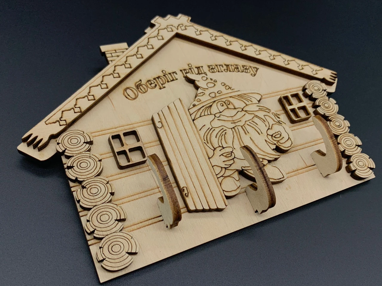Ключница настенная деревянная, 18х12см, «Оберег от порчи», в форме дома 3 крючка
