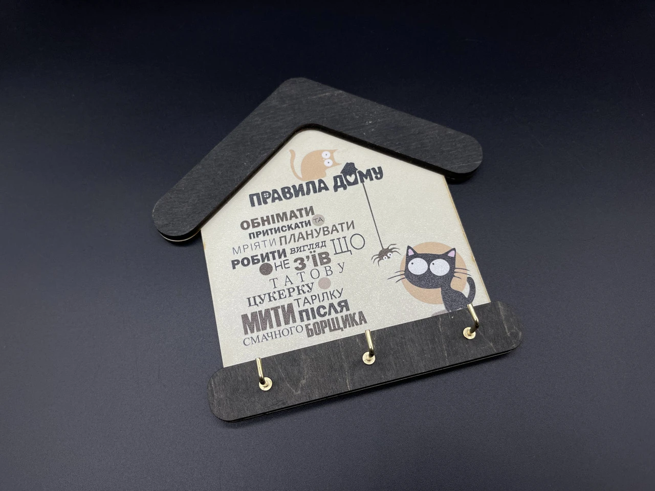 Ключница настенная деревянная, 18х18см, «Правила Дома», в форме дома 3 крючка