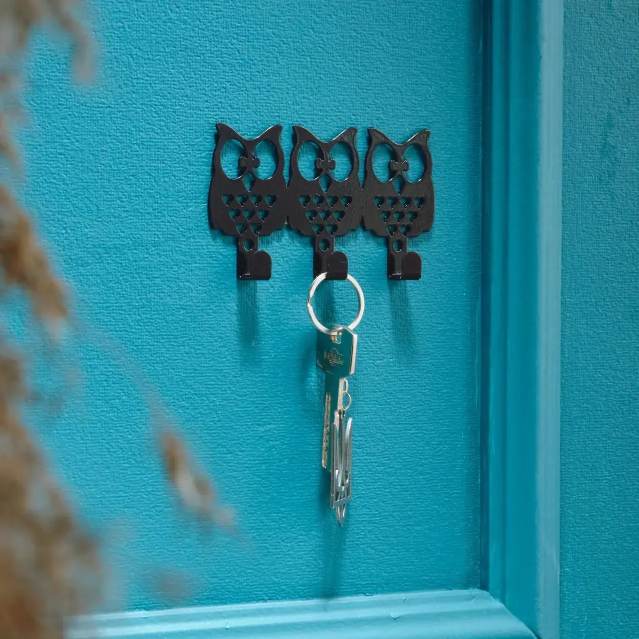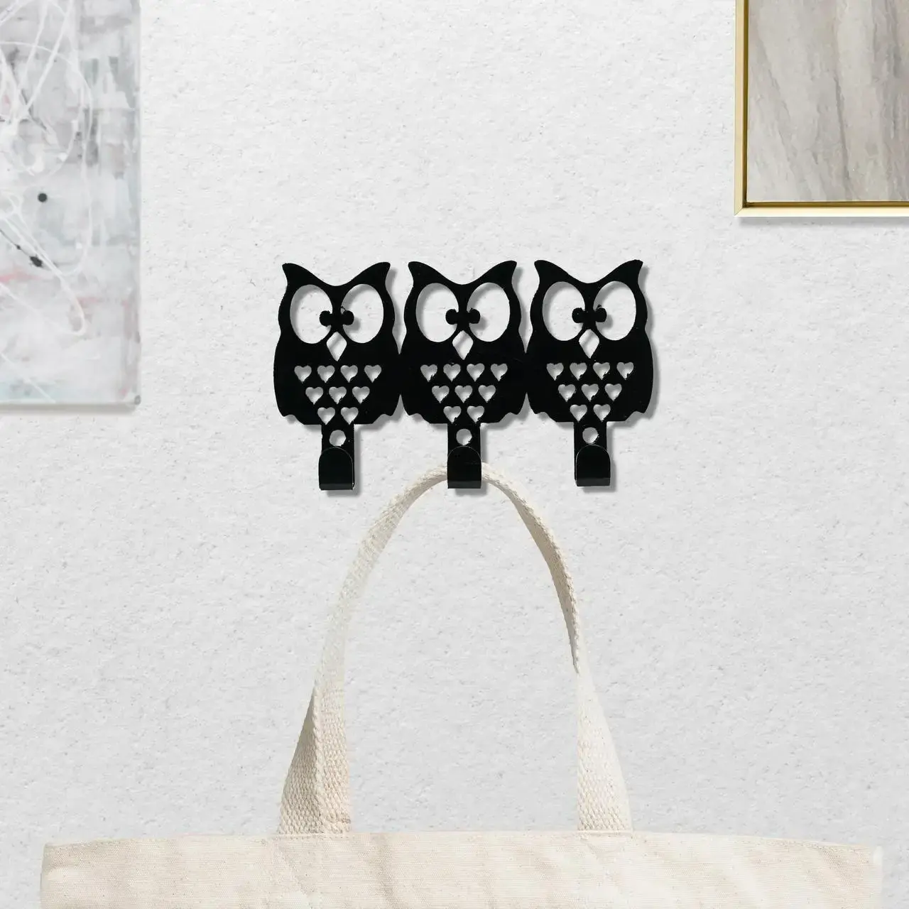 Ключница настенная металлическая, 11х6.5см, Цвет «черный», совы на 3 крючка