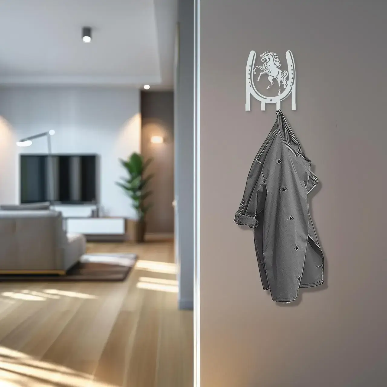 Ключница настенная металлическая, 13х14см, Цвет «белый», подкова на 4 крючка