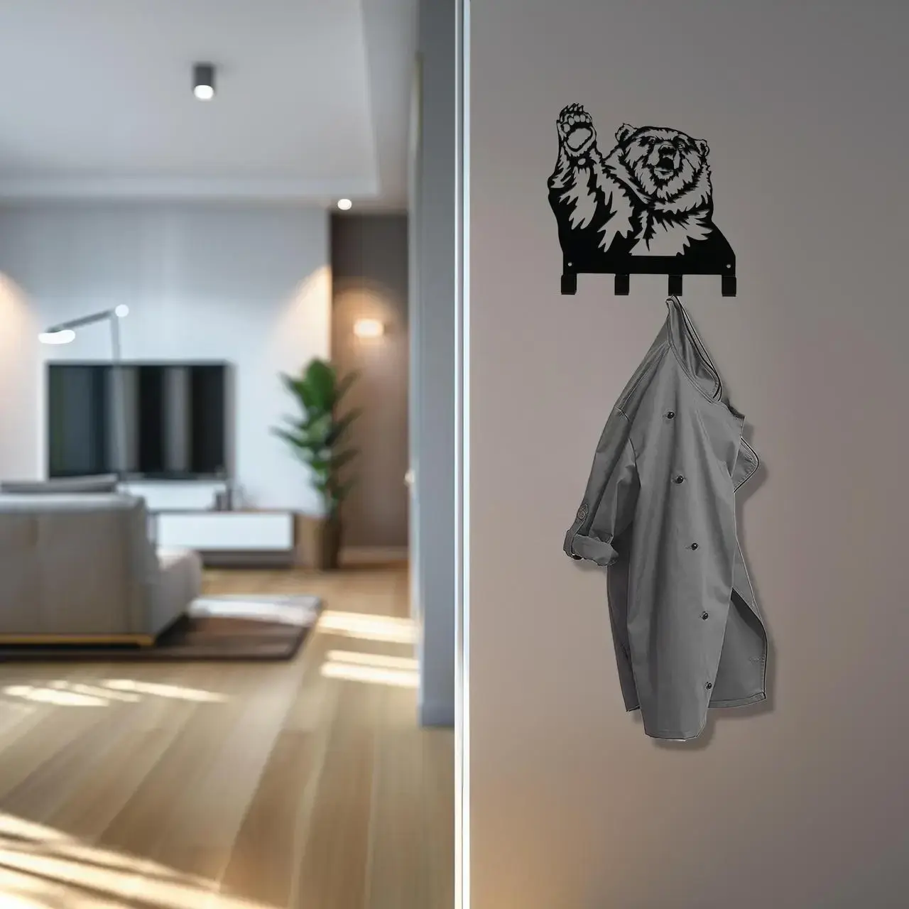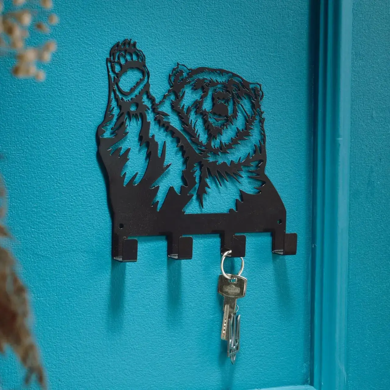Ключница настенная металлическая, 20х20см, Цвет «черный», медведь на 4 крючка